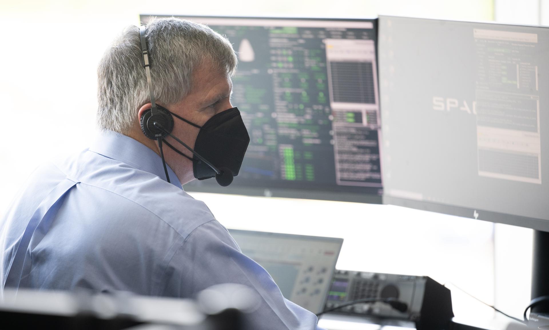 Steve Stich, manager of NASA’s Commercial Crew Program, monitor the countdown of the launch of a SpaceX Falcon 9 rocket carrying the company's Dragon spacecraft on NASA’s SpaceX Crew-11 mission with NASA astronauts Zena Cardman, Mike Fincke, JAXA (Japan Aerospace Exploration Agency) astronaut Kimiya Yui, and Roscosmos cosmonaut Oleg Platonov onboard, Friday, Aug. 1, 2025, in the control center of SpaceX’s HangarX at NASA’s Kennedy Space Center in Florida. NASA’s SpaceX Crew-11 mission is the eleventh crew rotation mission of the SpaceX Dragon spacecraft and Falcon 9 rocket to the International Space Station as part of the agency’s Commercial Crew Program. Cardman, Fincke, Yui, Platonov launched at 11:43 a.m. EDT, from Launch Complex 39A at the NASA's Kennedy Space Center. Photo Credit: (NASA/Joel Kowsky)
