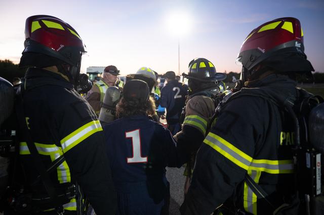 Teams at NASA's Kennedy Space Center in Florida practiced various emergency rescue training scenarios with the Artemis II crew, Friday, Dec. 19, 2025, ahead of the Artemis II mission. In the unlikely event of an emergency during launch countdown at Launch Complex 39B, personnel will be transported in mine-resistant ambush protected vehicles, or MRAPS, from the pad and to one of the triage site locations at Kennedy. Photo Credit: (NASA/Joel Kowsky)