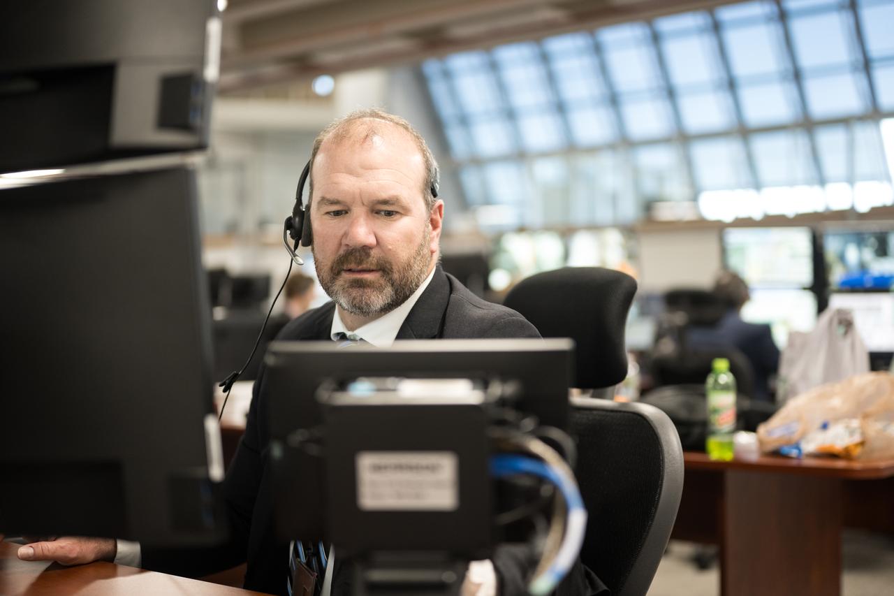 Teams monitor the progress of a Countdown Demonstration Test with Artemis II crewmembers NASA astronauts Reid Wiseman, commander; Victor Glover, pilot; Christina Koch, mission specialist; and CSA (Canadian Space Agency) astronaut Jeremy Hansen, mission specialist onboard their Orion spacecraft from Firing Room 2 of the Rocco A. Petrone Launch Control Center, Saturday, Dec. 20, 2025, at NASA’s Kennedy Space Center in Florida. For this operation, the Artemis II crew and launch teams are simulating the launch day timeline including suit-up, walkout, and spacecraft ingress and egress. Through the Artemis campaign, NASA will send astronauts to explore the Moon for scientific discovery, economic benefits, and to build the foundation for the first crewed missions to Mars, for the benefit of all. Photo Credit: (NASA/Aubrey Gemignani)