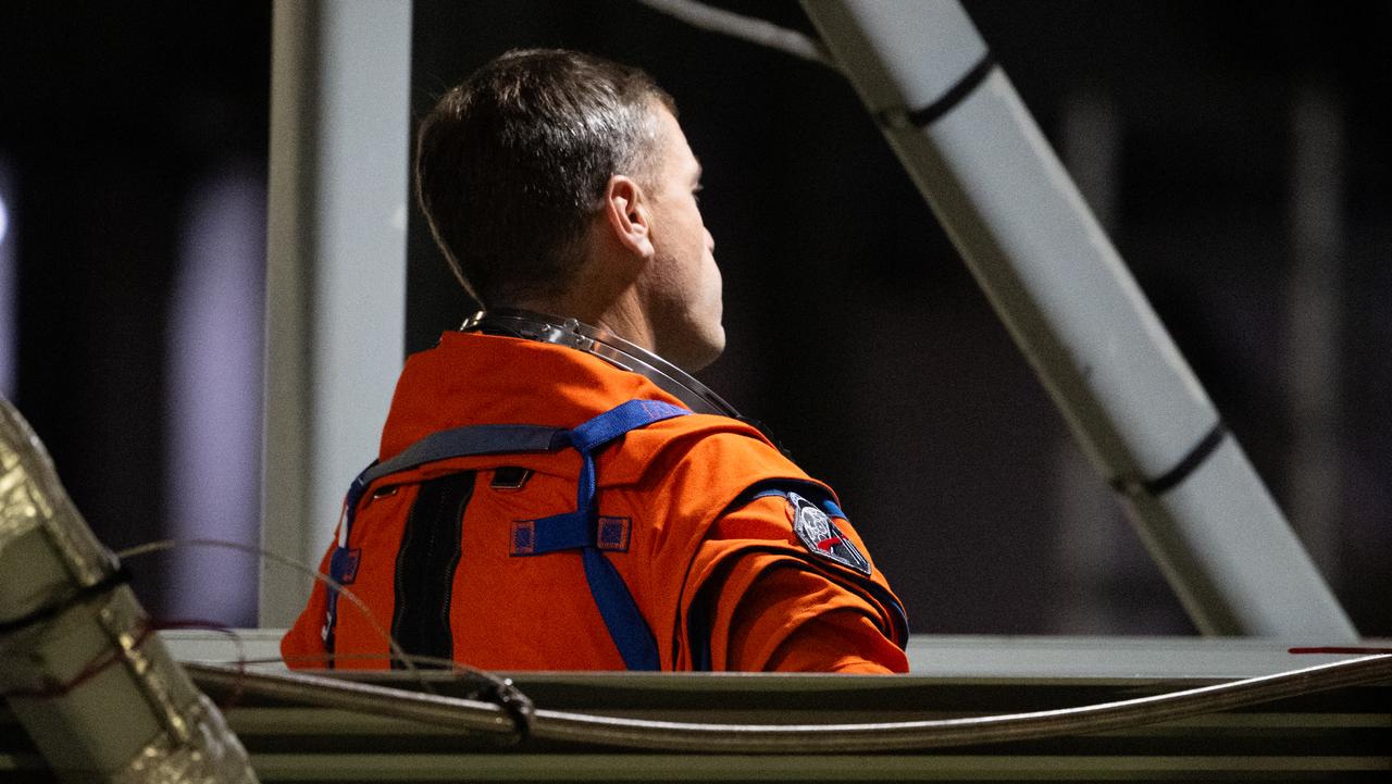 Artemis II crewmember NASA astronaut Reid Wiseman, commander; is seen on the crew access arm at the 275-foot level of the mobile launcher as he and fellow crewmates NASA astronauts Victor Glover, pilot; Christina Koch, mission specialist; and CSA (Canadian Space Agency) astronaut Jeremy Hansen, mission specialist; prepare to board their Orion spacecraft atop NASA’s Space Launch System rocket during the Artemis II countdown demonstration test, Saturday, Dec. 20, 2025, inside the Vehicle Assembly Building at NASA’s Kennedy Space Center in Florida. For this operation, the Artemis II crew and launch teams are simulating the launch day timeline including suit-up, walkout, and spacecraft ingress and egress. Through the Artemis campaign, NASA will send astronauts to explore the Moon for scientific discovery, economic benefits, and to build the foundation for the first crewed missions to Mars, for the benefit of all. Photo Credit: (NASA/Joel Kowsky)