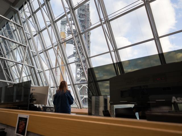 Charlie Blackwell-Thompson, Artemis II launch director at NASA's Kennedy Space Center is seen on console in Firing Room One of the Rocco A. Petrone Launch Control Center as NASA’s Artemis II Space Launch System (SLS) rocket and Orion spacecraft, secured to the mobile launcher, roll out of High Bay 3 of the Vehicle Assembly Building to Launch Complex 39B, Saturday, Jan. 17, 2026, at NASA’s Kennedy Space Center in Florida. NASA’s Artemis II test flight will take Commander Reid Wiseman, Pilot Victor Glover, and Mission Specialist Christina Koch from NASA, and Mission Specialist Jeremy Hansen from the CSA (Canadian Space Agency), around the Moon and back to Earth no later than April 2026. Photo Credit: (NASA/Aubrey Gemignani)