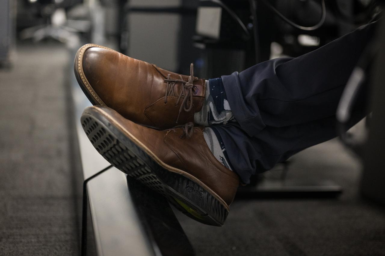 A mission team member's space themed socks are seen as he monitors the countdown of the launch of a SpaceX Falcon 9 rocket carrying the company's Dragon spacecraft on NASA’s SpaceX Crew-12 mission with NASA astronauts Jessica Meir, Jack Hathaway, ESA (European Space Agency) astronaut Sophie Adenot, and Roscosmos cosmonaut Andrey Fedyaev onboard, Friday, Feb. 13, 2026, in the control center of SpaceX’s HangarX at NASA’s Kennedy Space Center in Florida. NASA’s SpaceX Crew-12 mission is the twelfth crew rotation mission of the SpaceX Dragon spacecraft and Falcon 9 rocket to the International Space Station as part of the agency’s Commercial Crew Program. Meir, Hathaway, Adenot, and Fedyaev are scheduled to launch at 5:15 a.m. EST, from Space Launch Complex 40 at the Cape Canaveral Space Force Station. Photo Credit: (NASA/Aubrey Gemignani)