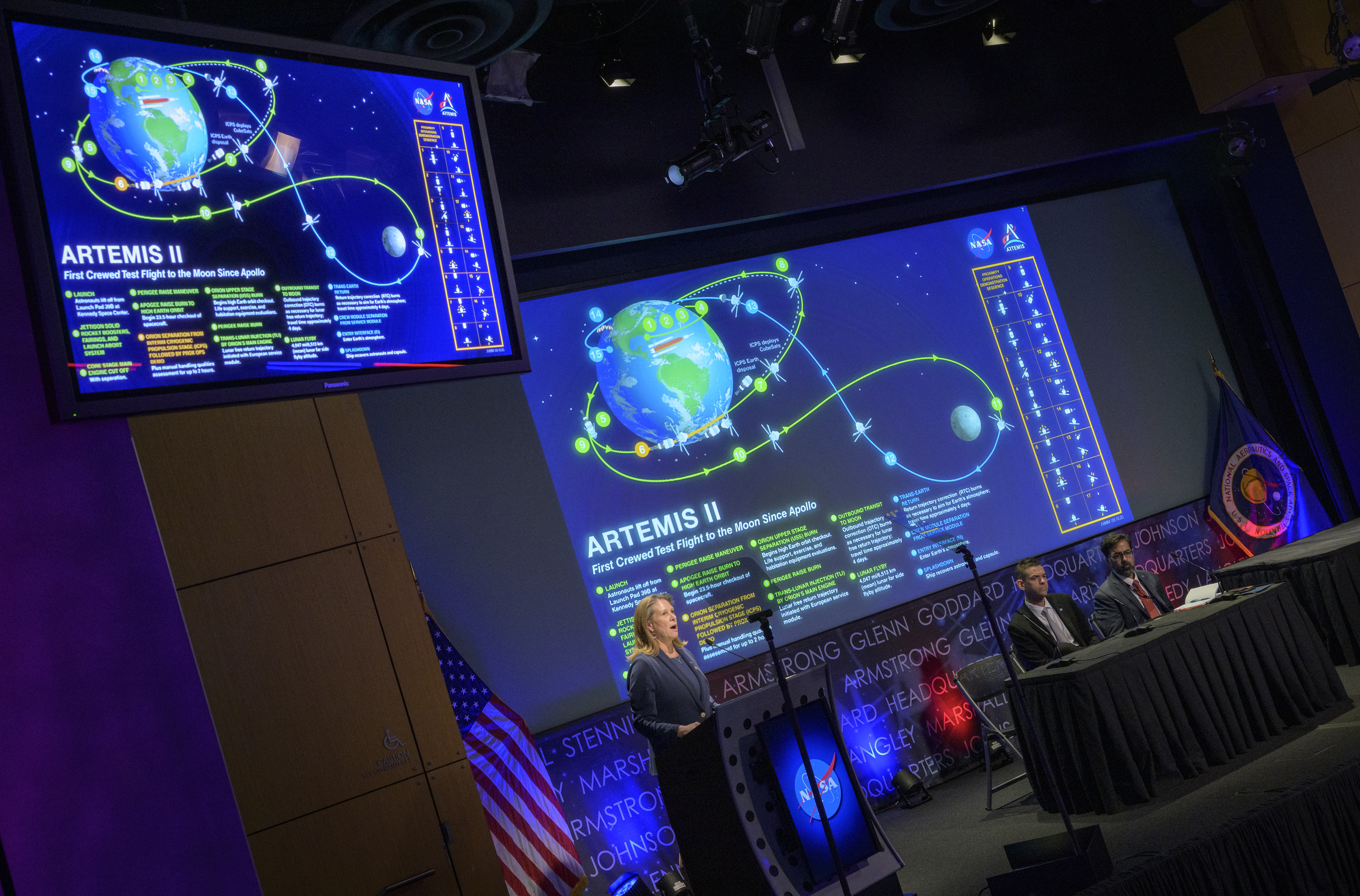 Acting Associate Administrator for NASA's Exploration Systems Development Mission Directorate, Lori Glaze, speaks during an event where NASA is outlining how the agency is executing President Donald J. Trump’s National Space Policy and accelerating preparations for America’s return to the surface of the Moon by 2028, Tuesday, March 24, 2026, at the Mary W. Jackson NASA Headquarters building in Washington. During the event NASA leadership provided updates on mission priorities, including sending the first astronauts to the lunar surface in more than 50 years, establishing the initial elements of a permanent lunar base, getting America underway in space on nuclear propulsion, and other objectives. Photo Credit: (NASA/Bill Ingalls)