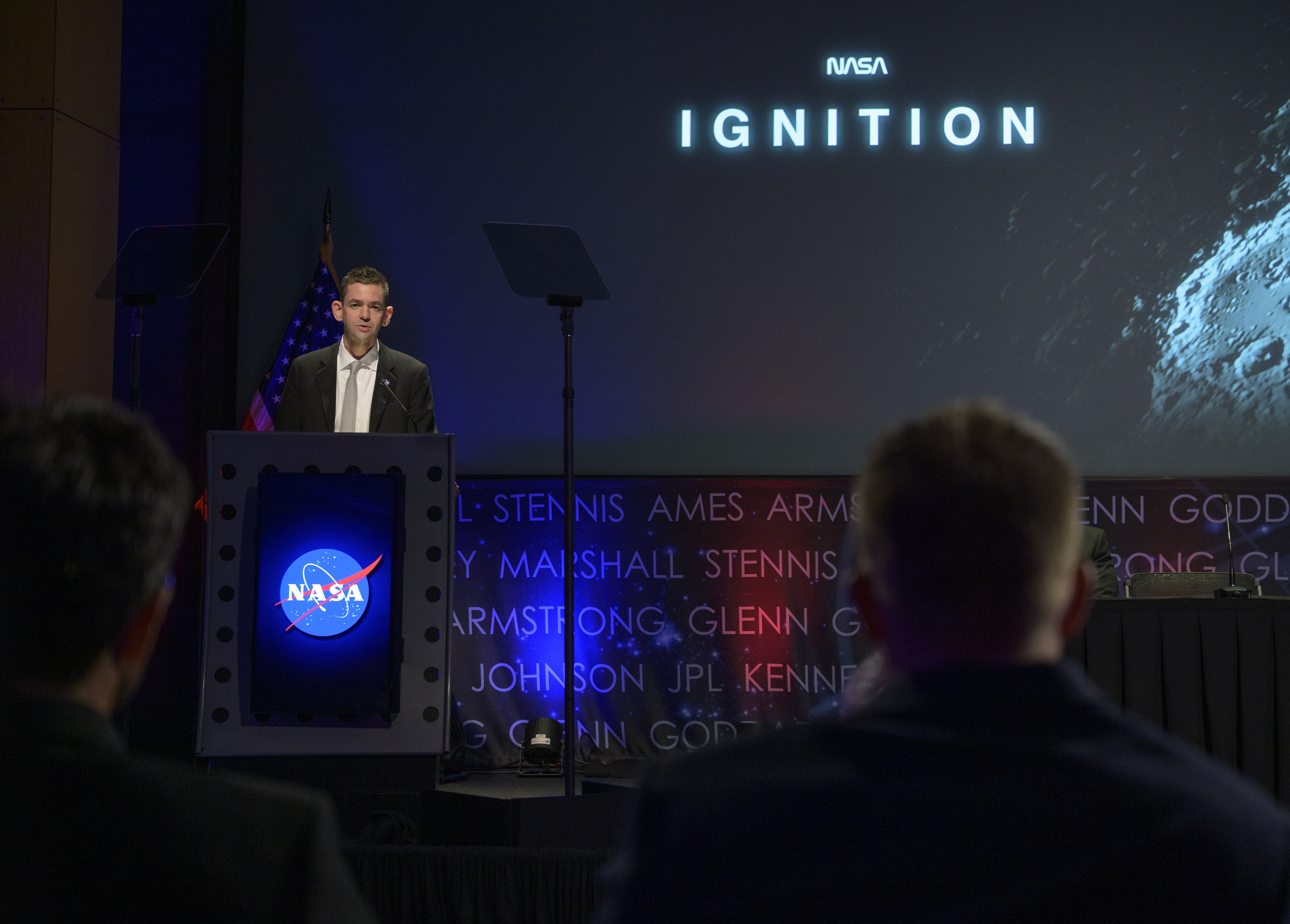 NASA Administrator Jared Isaacman speaks at the conclusion of an event where NASA outlined how the agency is executing President Donald J. Trump’s National Space Policy and accelerating preparations for America’s return to the surface of the Moon by 2028, Tuesday, March 24, 2026, at the Mary W. Jackson NASA Headquarters building in Washington. During the event NASA leadership provided updates on mission priorities, including sending the first astronauts to the lunar surface in more than 50 years, establishing the initial elements of a permanent lunar base, getting America underway in space on nuclear propulsion, and other objectives. Photo Credit: (NASA/Bill Ingalls)