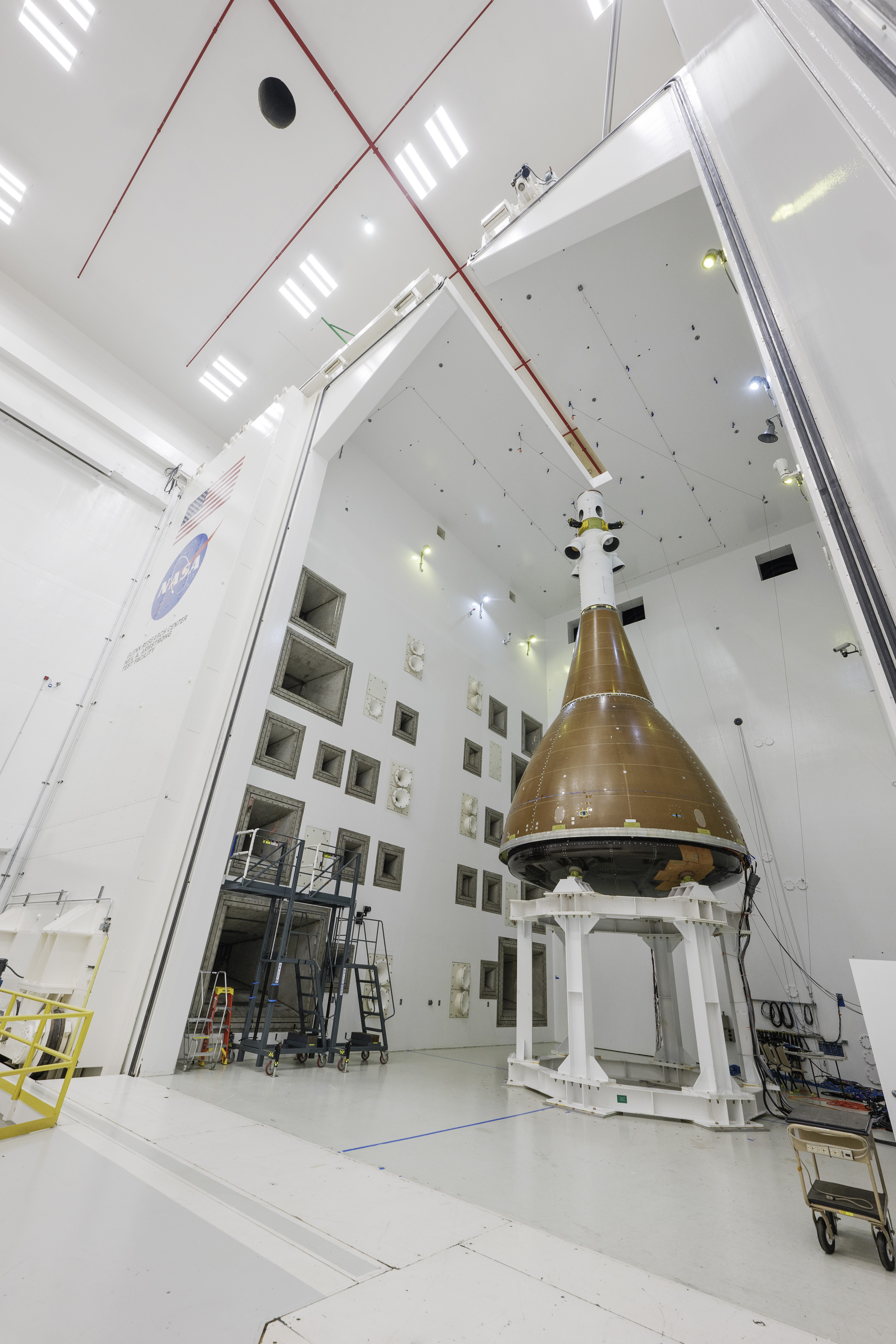 The team at NASA's Armstrong Test Facility in Sandusky, Ohio has begun vibro-acoustic testing on the Orion spacecraft that flew around the Moon on Artemis I, now known as the Environmental Test Article. The testing will help ensure the safety of future crews aboard Orion. Photo credit: NASA / Rad Sinyak