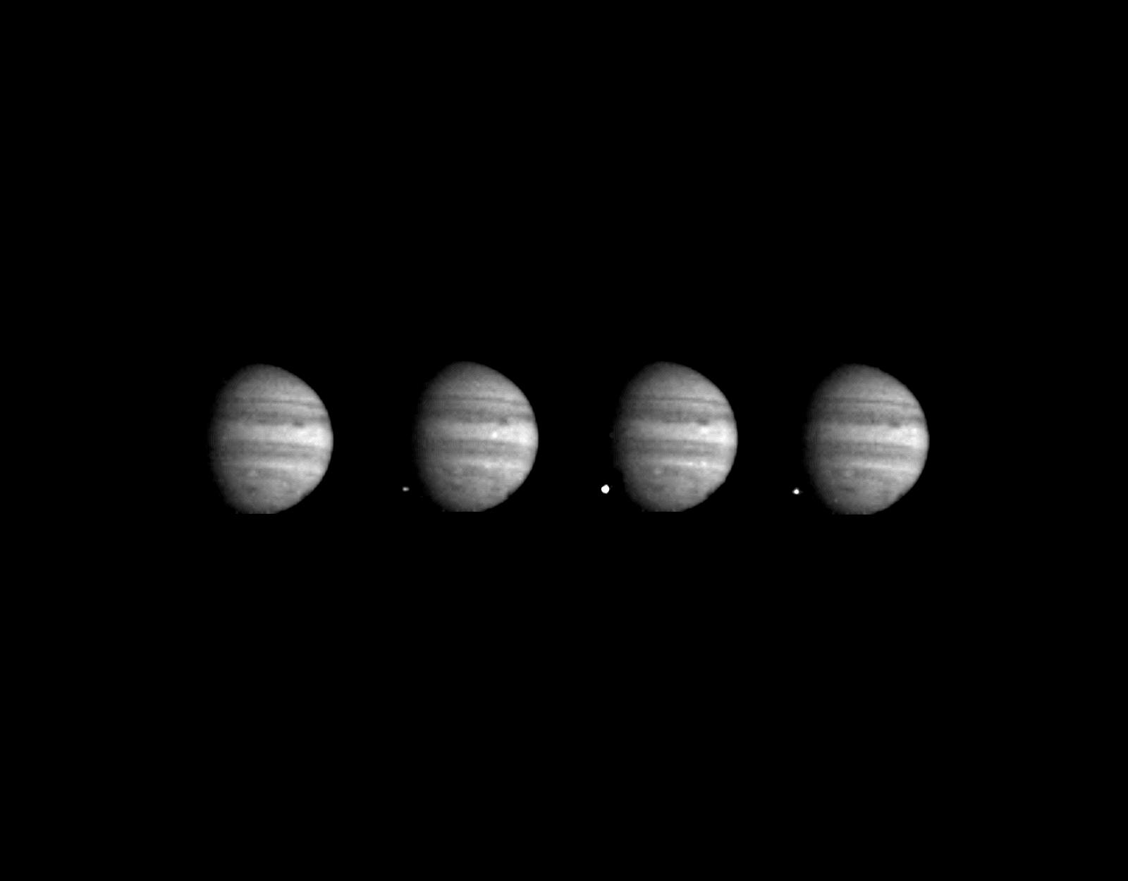 These four images of Jupiter and the luminous night-side impact of fragment W of Comet Shoemaker-Levy 9 were taken NASA's Galileo spacecraft on July 22, 1994. http://photojournal.jpl.nasa.gov/catalog/PIA00139