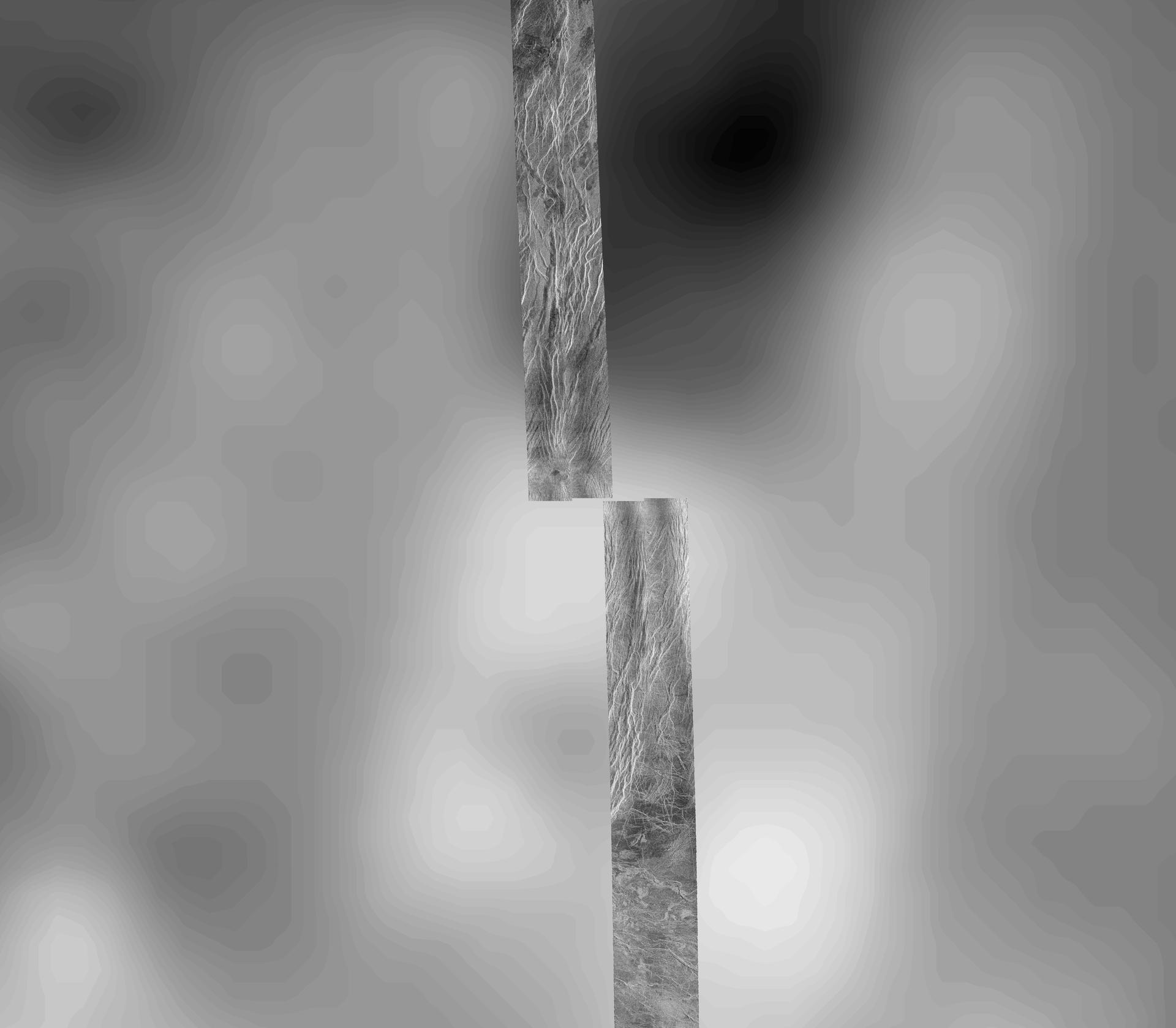 This image covers part of the 150 kilometer (90 mile) wide, 1 to 1.5 kilometer (0.6 to 0.9 mile) deep valley, Devana Chasma. The image is a composite of the first two orbits recorded by NASA's Magellan spacecraft in August 1990 superimposed on Pioneer Venus topography. This image is located at the intersection of Devana Chasma and the Phoebe Regio upland. It covers a region approximately 525 by 525 kilometers (315 by 315 miles), centered 288 degrees east longitude on the equator. Devana Chasma consists of radar bright lineaments, interpreted to be fault scarps, oriented in a north-northeast direction. This part of the planet is thought to be an area where the crust is being stretched and pulled apart producing a rift valley, similar to the East African rift. http://photojournal.jpl.nasa.gov/catalog/PIA00464