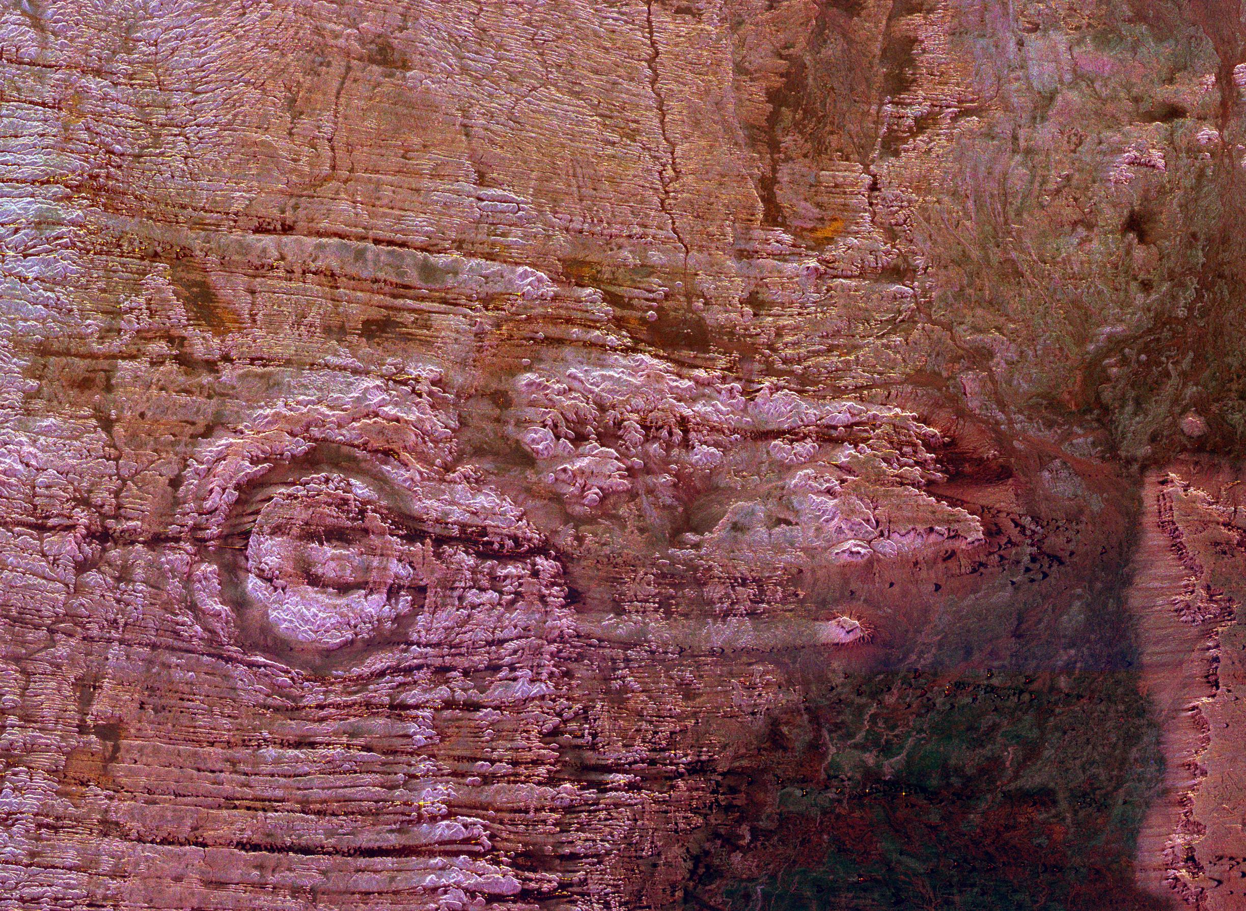 The impact of an asteroid or comet several hundred million years ago left scars in the landscape that are still visible in this spaceborne radar image of an area in the Sahara Desert of northern Chad.