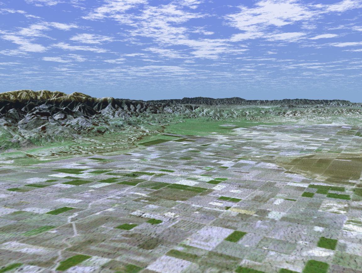 San Joaquin, the name given to the southern portion of California vast Central Valley, as shown in this image acquired by NASA Shuttle Radar Topography Mission SRTM on February 16, 2000.