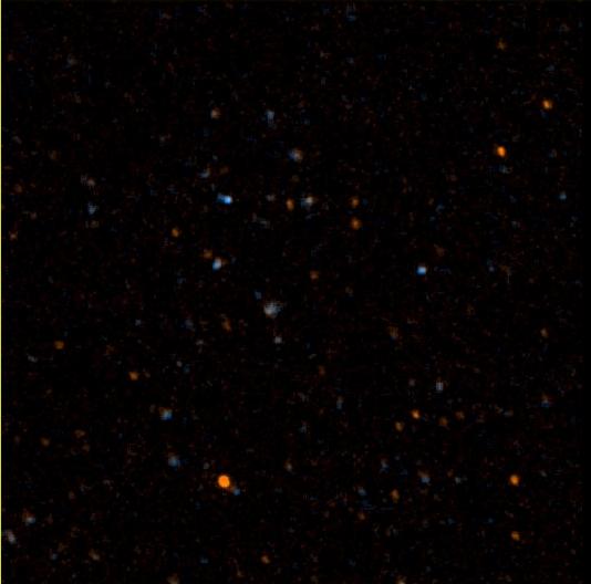 NASA's Galaxy Evolution Explorer took this image on May 21 and 22, 2003. The image was made from data gathered by the two channels of the spacecraft camera during the mission's "first light" milestone. It shows about 100 celestial objects in the constellation Hercules. The reddish objects represent those detected by the camera's near ultraviolet channel over a 5-minute period, while bluish objects were detected over a 3-minute period by the camera's far ultraviolet channel. The Galaxy Evolution Explorer's first light images are dedicated to the crew of the Space Shuttle Columbia. The Hercules region was directly above Columbia when it made its last contact with NASA Mission Control on February 1, over the skies of Texas. The Galaxy Evolution Explorer launched on April 28 on a mission to map the celestial sky in the ultraviolet and determine the history of star formation in the universe over the last 10 billion years. http://photojournal.jpl.nasa.gov/catalog/PIA04281