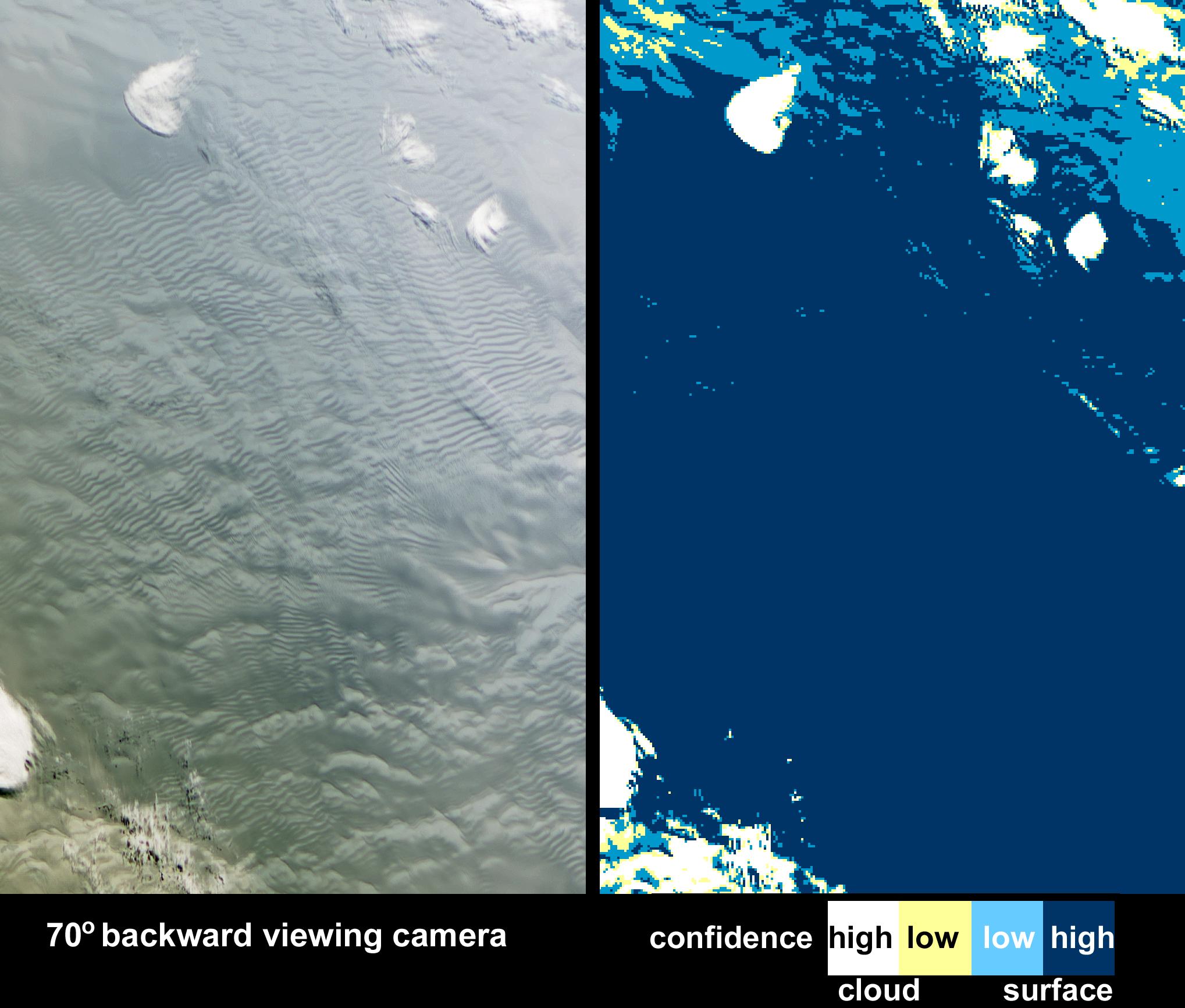 As it passed over Antarctica on December 16, 2004, NASA Terra satellite captured this image showing a wavy pattern in a field of white.