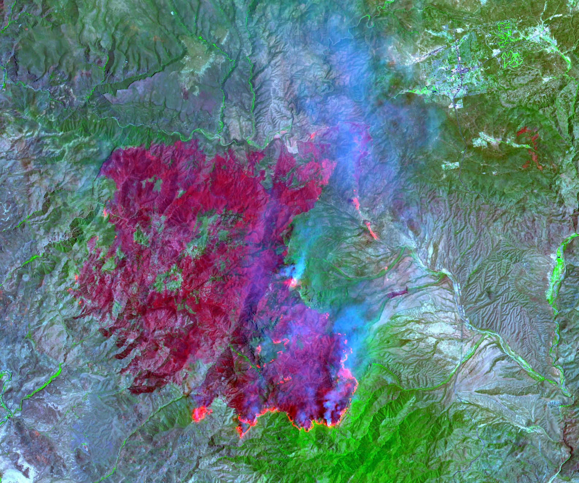 On July 3, 2004, the Advanced Spaceborne Thermal Emission and Reflection Radiometer ASTER on NASA Terra satellite acquired this image of the Willow fire near Payson, Arizona.