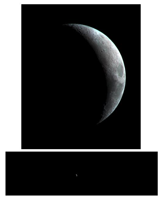 This crescent view of Earth Moon in infrared wavelengths comes from a camera test by NASA Mars Reconnaissance Orbiter spacecraft on its way to Mars. This image was taken by taken by the High Resolution Imaging Science Experiment camera Sept. 8, 2005.
