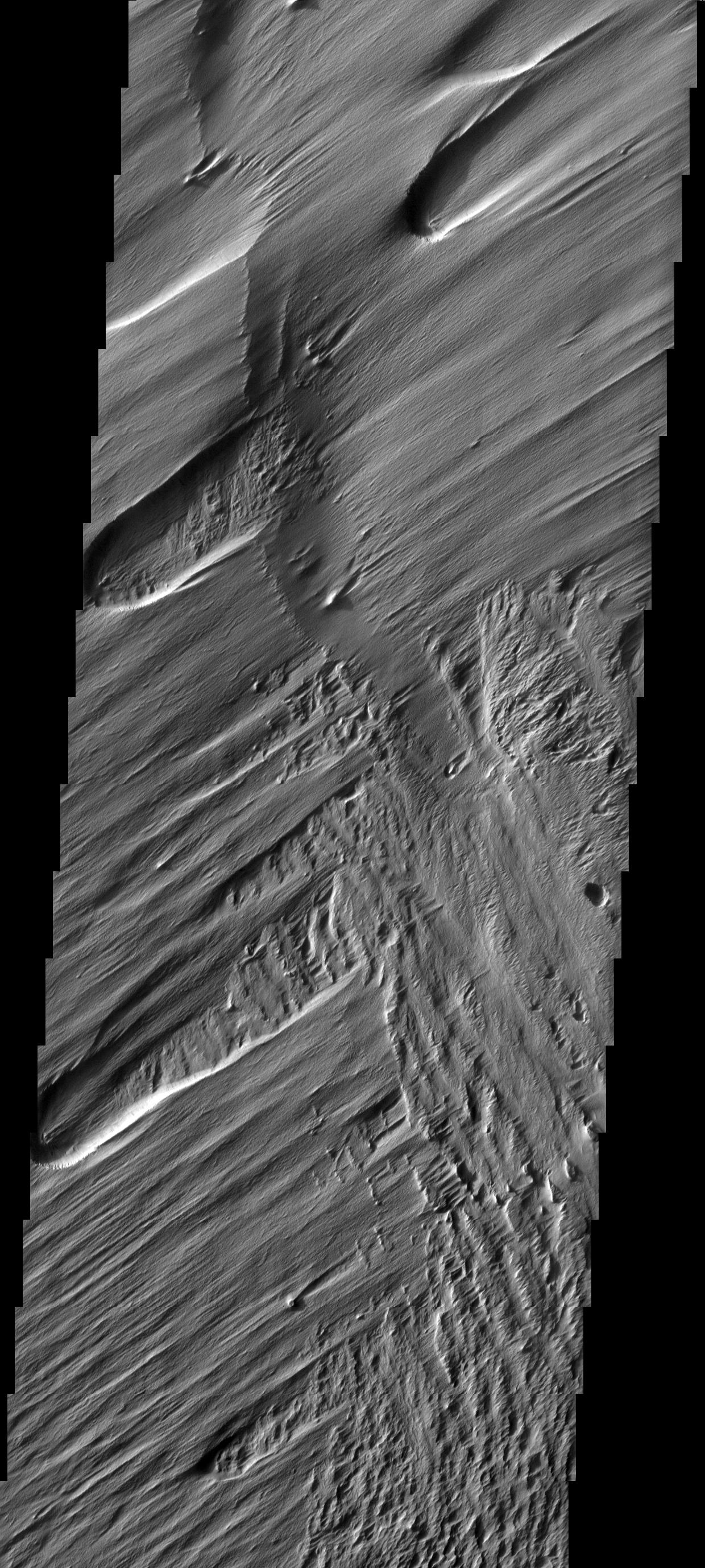 The action of the wind is sculpting and removing material in this area. The older surface below is being re-exposed, a process called exhumation