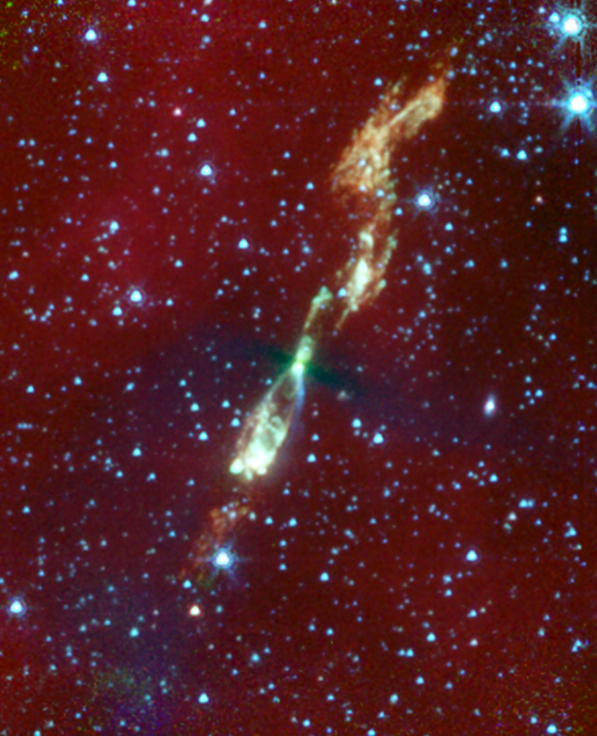 A rare, infrared view of a developing star and its flaring jets taken by NASA Spitzer Space Telescope shows us what our own solar system might have looked like billions of years ago.