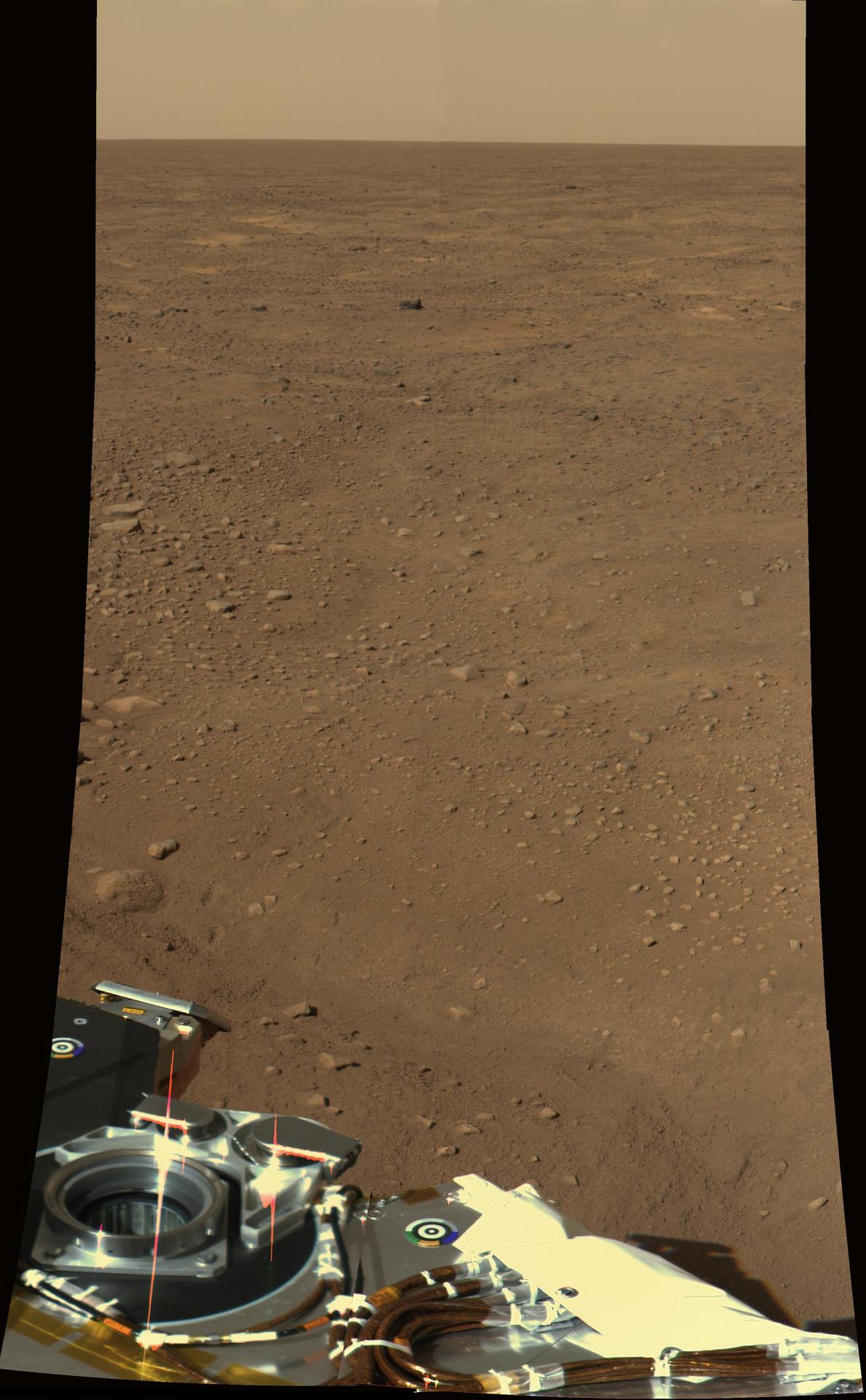 This approximate color view was obtained on sol 2 by the Surface Stereo Imager SSI on board NASA Mars Phoenix lander. The view is toward the northwest, showing polygonal terrain near the lander and out to the horizon.