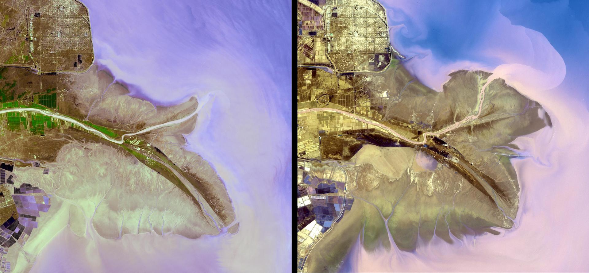 The Yellow River is the second-longest river in China, and the sixth longest in the world and makes many dramatic shifts over time. This image was taken with the ASTER instrument aboard NASA Terra spacecraft in 2009.
