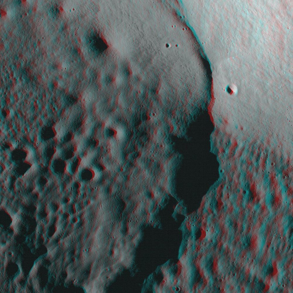 NASA Lunar Reconnaissance Orbiter looks at the Moon in 3D. 3D glasses are necessary to view this image.