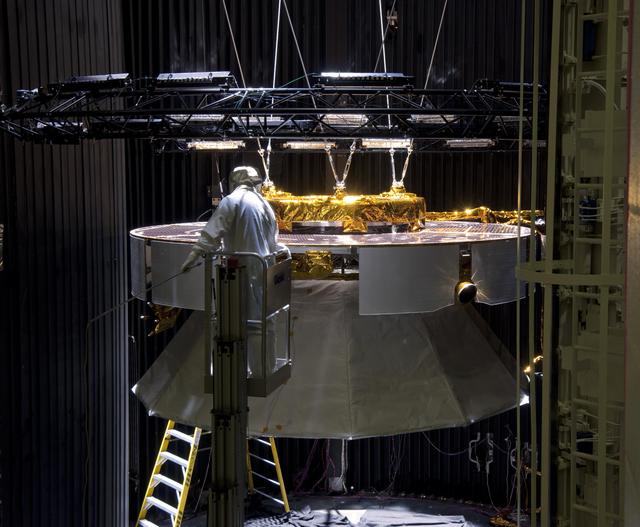 Testing of the cruise stage for NASA Mars Science Laboratory in August 2010 included a session in a facility that simulates the environment found in interplanetary space.