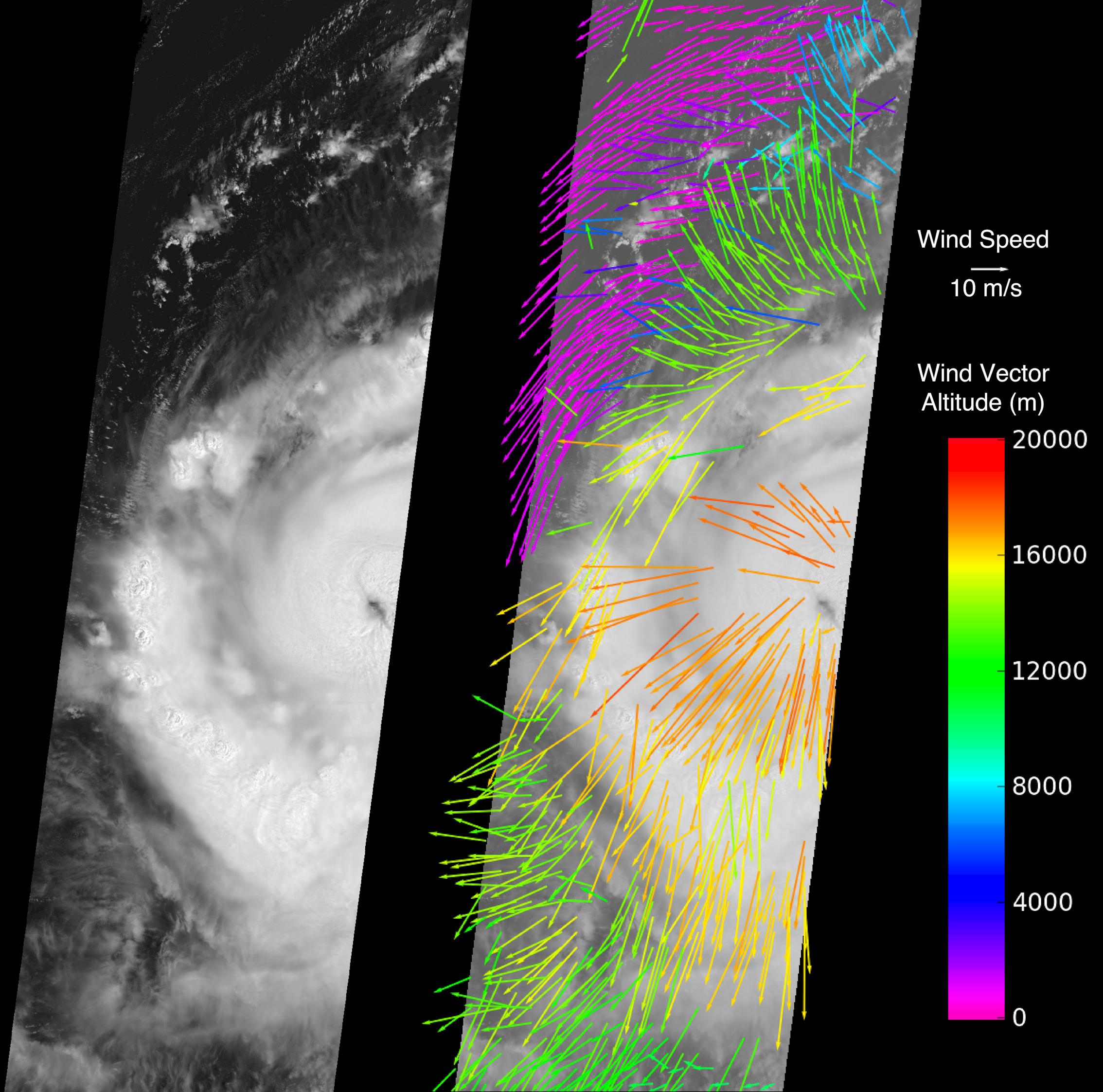 NASA Multi-angle Imaging SpectroRadiometer instrument captured this image of Hurricane Earl Aug. 30, 2010. At this time, Hurricane Earl was a Category 3 storm. The hurricane eye is just visible on the right edge of the MISR image swath.