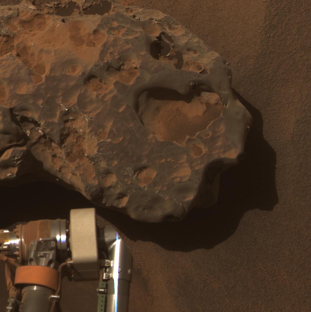 NASA Mars Exploration Rover Opportunity found and examined this meteorite. The science team used two tools on Opportunity arm, the microscopic imager and the alpha particle X-ray spectrometer, to inspect the rock texture and composition.