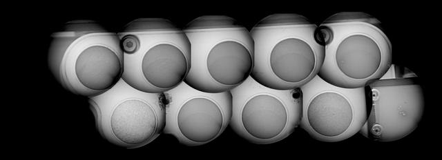 This mosaic shows the calibration target for the Chemistry and Camera ChemCam instrument on NASA Curiosity rover, as seen by the ChemCam remote micro-imager. The 10 images incorporated in this mosaic were taken on Aug. 15.