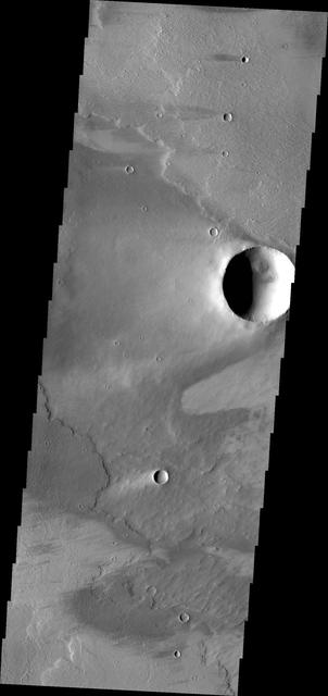 The windstreaks in this image from NASA 2001 Mars Odyssey spacecraft are located on the volcanic plains of Daedalia Planum.