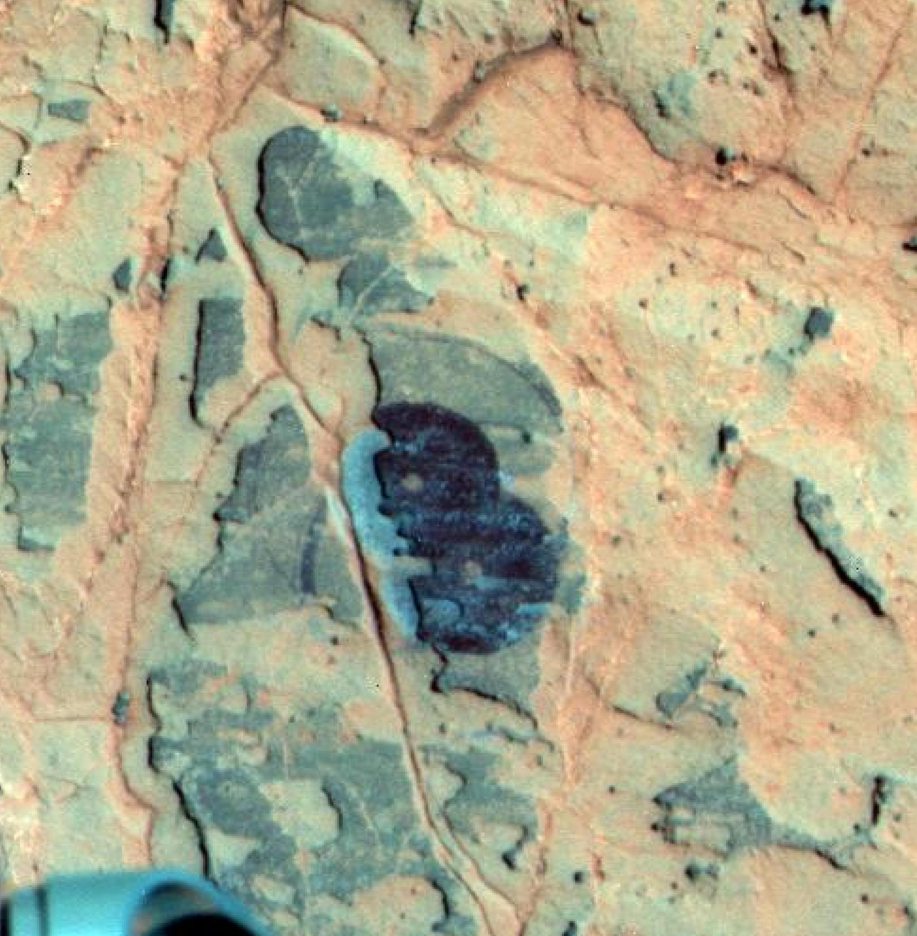 Researchers used NASA Mars Exploration Rover Opportunity to find a water-related mineral on the ground that had been detected from orbit, and found it in the dark veneer of rocks on the rim of Endeavour Crater.
