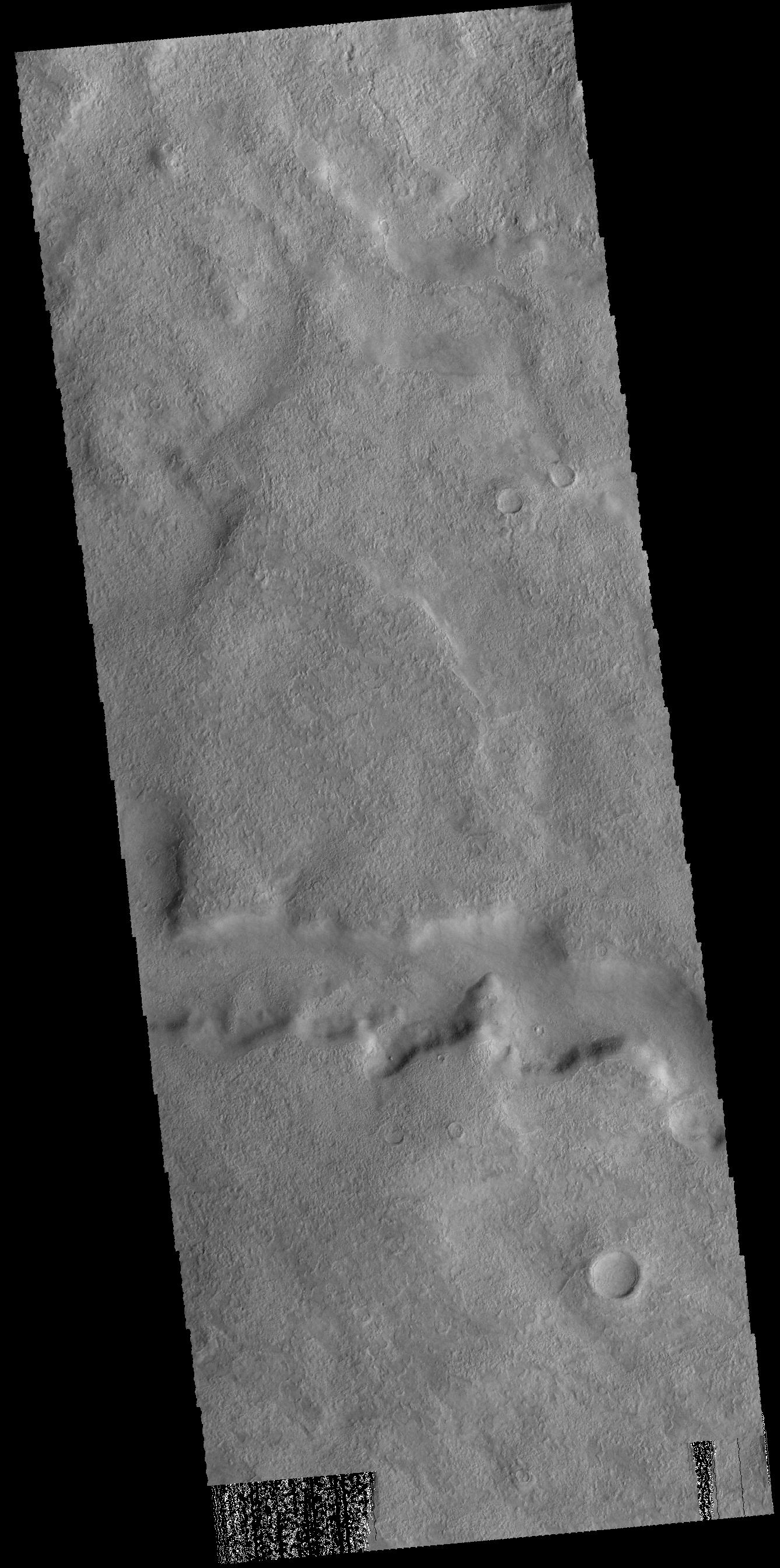 This image captured by NASA 2001 Mars Odyssey spacecraft shows a section of Tader Valles located in Terra Sirenum.