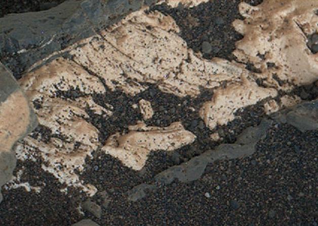 This view from the Mars Hand Lens Imager (MAHLI) on the arm of NASA's Curiosity Mars rover shows texture within a light-toned vein at a site called "Garden City" on lower Mount Sharp. The area shown is roughly 0.9 inch (2.2 centimeters) wide. It was taken during the 946th Martian day, or sol, of Curiosity's work on Mars (April 4, 2015). Differences in textures of light-toned veins in the Garden City complex of crisscrossing mineral veins are clues that these veins may result from distinct fluid events. This vein's texture shows indications of crystal growth, suggesting that crystallization may have exerted a force for opening the fracture filled by the vein. Different examples are at PIA19926 and PIA19927. Mineral veins often form where fluids move through fractured rocks, depositing minerals in the fractures and affecting chemistry of the surrounding rock. At Garden City, the veins have been more resistant to erosion than the surrounding host rock. The fluid movement through fractures at Garden City occurred later than wet environmental conditions in which the host rock formed, before it hardened and cracked. Malin Space Science Systems, San Diego, built and operates MAHLI. NASA's Jet Propulsion Laboratory, a division of the California Institute of Technology in Pasadena, manages the Mars Science Laboratory Project for the NASA Science Mission Directorate, Washington. JPL designed and built the project's Curiosity rover. http://photojournal.jpl.nasa.gov/catalog/PIA19925
