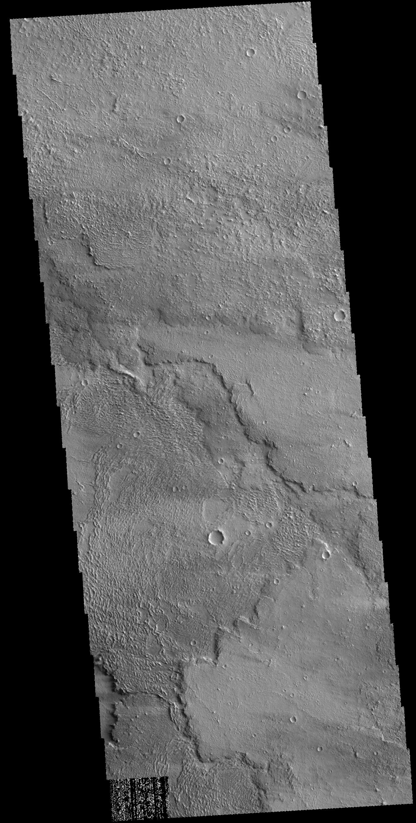 This image captured by NASA 2001 Mars Odyssey spacecraft shows part of the lava flows that originated from Arsia Mons.