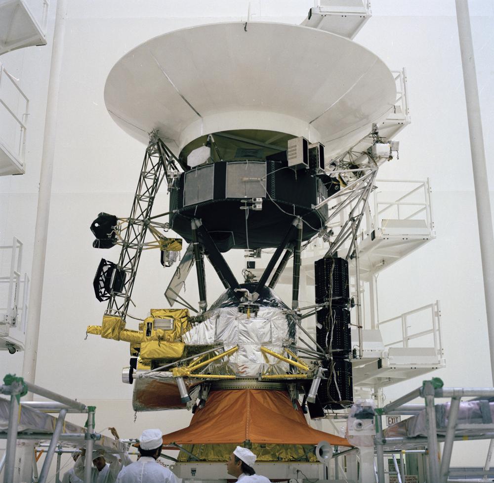 This archival photo shows the encapsulation of the Voyager Development Test Model at NASA's Kennedy Space Center's Eastern Test Range. The picture was taken on October 8, 1976. https://photojournal.jpl.nasa.gov/catalog/PIA21731