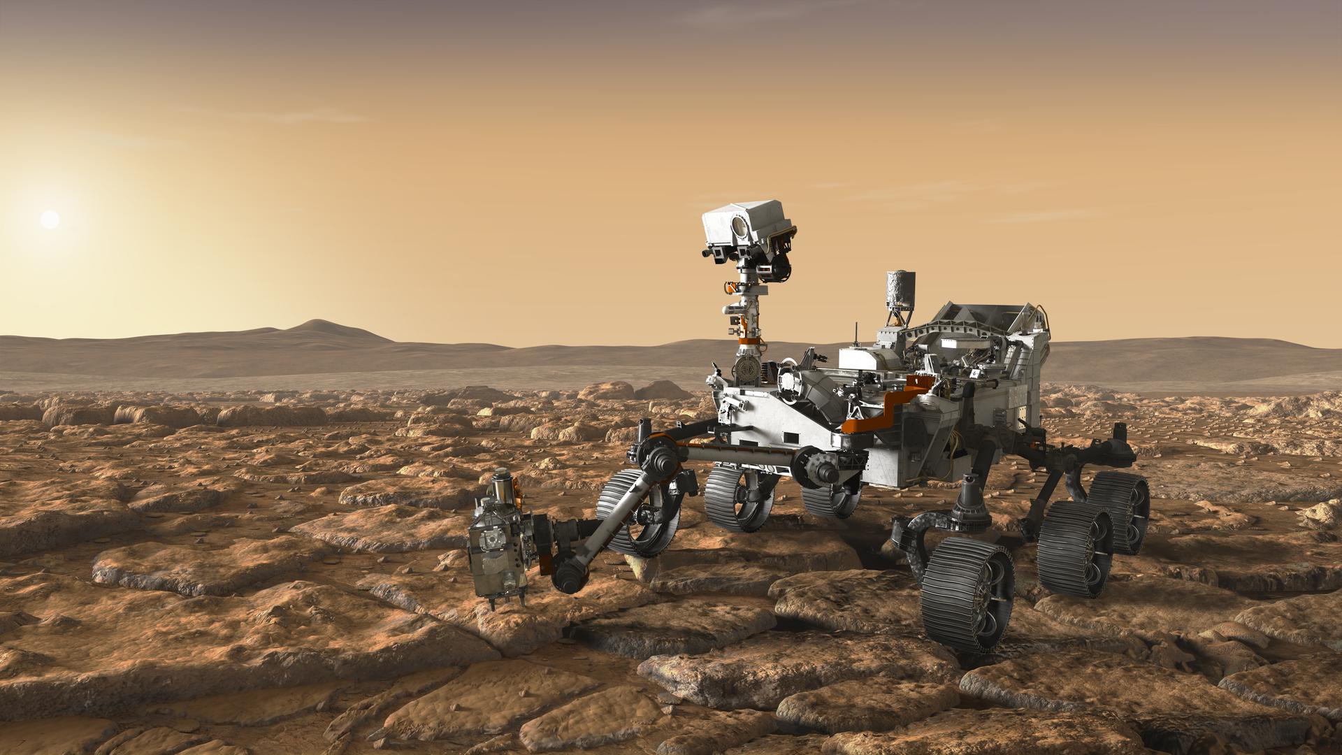 This artist's concept depicts NASA's Mars 2020 rover exploring Mars. The mission will not only seek out and study an area likely to have been habitable in the distant past, but it will take the next, bold step in robotic exploration of the Red Planet by seeking signs of past microbial life itself. Mars 2020 will use powerful instruments to investigate rocks on Mars down to the microscopic scale of variations in texture and composition. It will also acquire and store samples of the most promising rocks and soils that it encounters, and set them aside on the surface of Mars. A future mission could potentially return these samples to Earth. Mars 2020 is targeted for launch in July/August 2020 aboard an Atlas V-541 rocket from Space Launch Complex 41 at Cape Canaveral Air Force Station in Florida. https://photojournal.jpl.nasa.gov/catalog/PIA22107