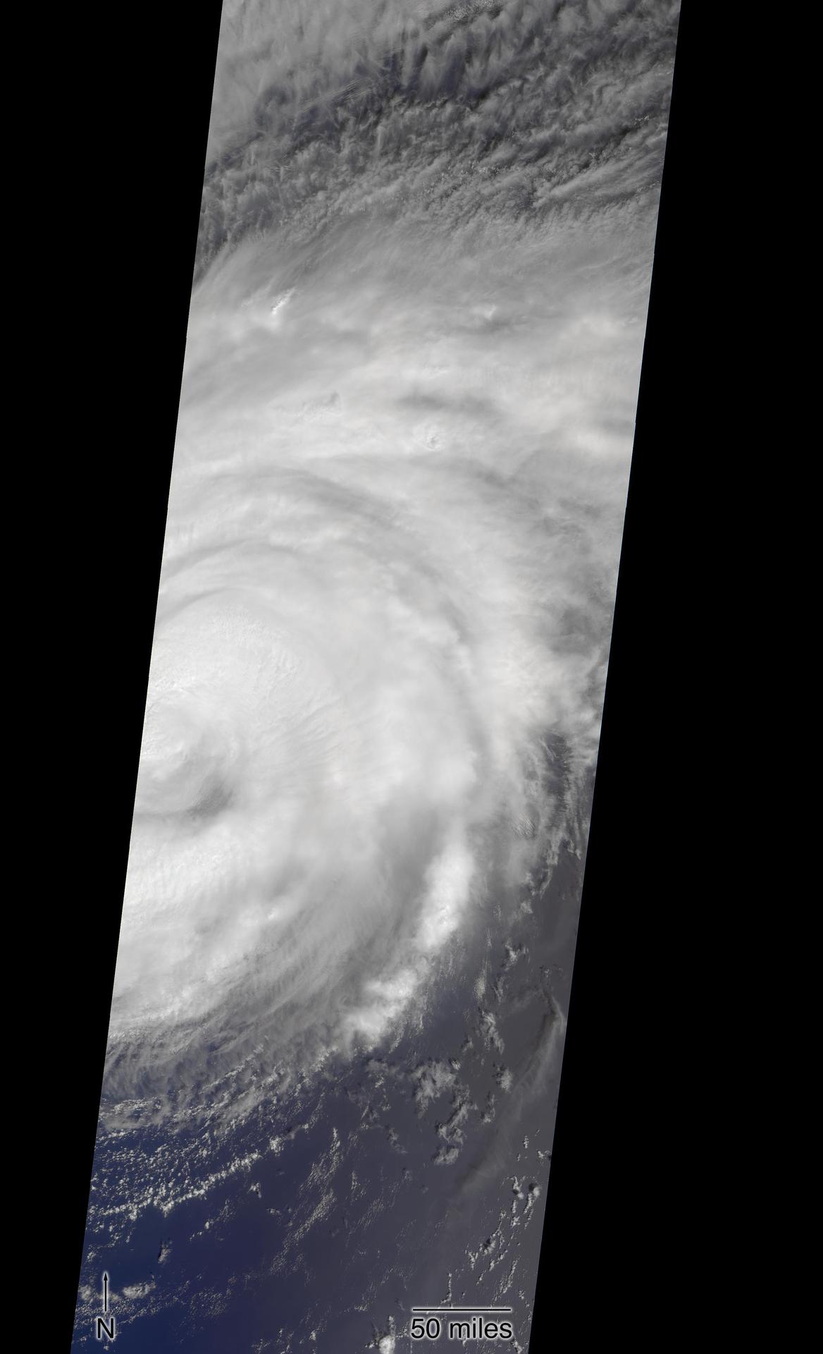 NASA's Multi-angle Imaging SpectroRadiometer (MISR) passed over Hurricane Florence as it approached the eastern coast of the United States on Thursday, September 13, 2018. At the time the image was acquired, Florence was a large Category 2 storm and coastal areas were already being hit with tropical-storm-force winds. The MISR instrument, flying onboard NASA's Terra satellite, carries nine cameras that observe Earth at different angles. It takes about seven minutes for all the cameras to observe the same location. The motion of the clouds during that time is used to compute wind speed at the cloud tops. These images show Florence as viewed by the central, downward-looking camera (left) and the storm's wind speeds (right). In the right image, the length of the arrows is proportional to wind speed and their colors show the altitude of the cloud tops in kilometers. The data show that the cloud top winds near the center of the storm were approximately 70 mph (113 kph), and the maximum cloud-top wind speed throughout the storm was 90 mph (145 kph). The wind data also shows that the lowest clouds are moving counter-clockwise, indicating inflow into the southern part of the hurricane, while the high clouds to the north of the hurricane show a clockwise outflow. https://photojournal.jpl.nasa.gov/catalog/PIA22700