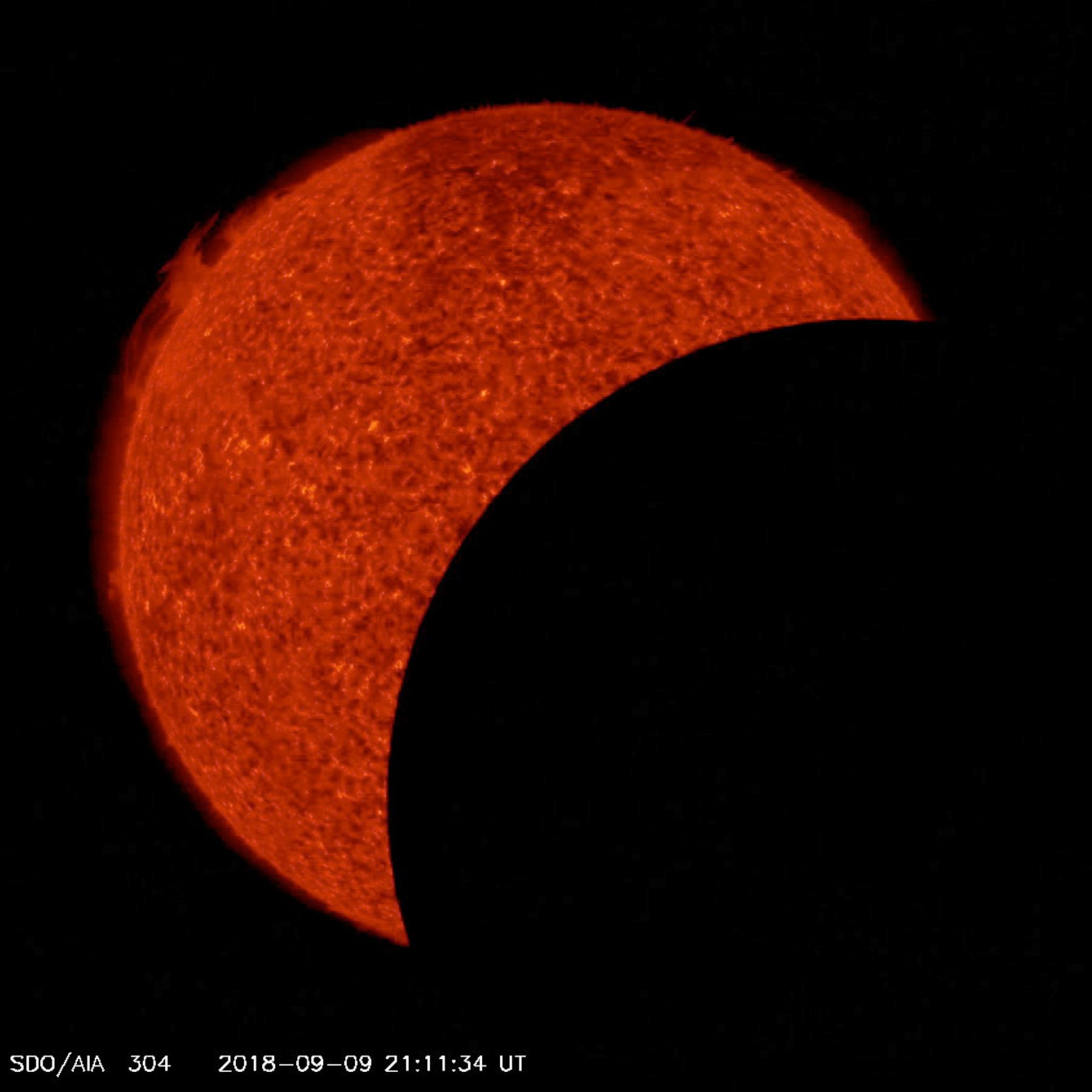 In just about seven hours, NASA's Solar Dynamics Observatory spacecraft saw the moon transit the Sun two times (Sept. 9-10, 2018). Transits occur when an object passes between a larger body and the viewer. The first transit lasted about an hour and covered 92 percent of the Sun at its peak. The second transit lasted about 50 minutes and covered just 34 percent of the Sun at its peak. The Moon appears to go in one direction in the first transit and the opposite direction in the second. This is because the SDO spacecraft orbits around Earth, moving in the same direction as the Moon but faster. On the first transit it catches up with and passes the Moon. As SDO swings back around the far side of Earth, it encounters the Moon again from the far side of Earth, where it appears to travel in the opposite direction. The images were taken in a wavelength of extreme ultraviolet light. None of this was visible from Earth. Movies are available at https://photojournal.jpl.nasa.gov/catalog/PIA22723