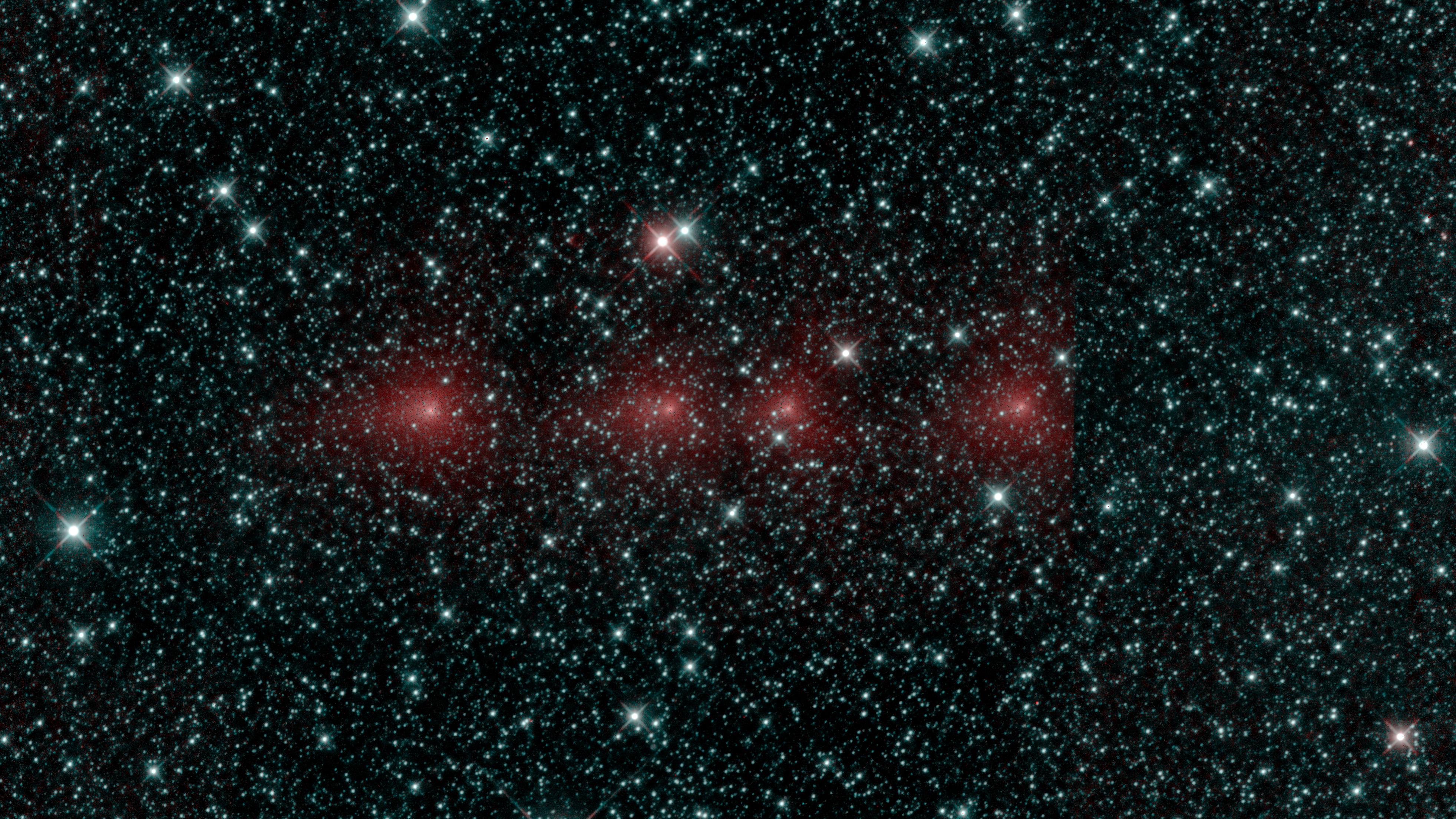 Comet C/2018 Y1 Iwamoto as imaged in multiple exposures of infrared light by the NEOWISE space telescope. The infrared images were taken on Feb. 25, 2019, when the comet was about 56 million miles, or 90 million kilometers, from Earth. C/2018 Y1 Iwamoto is a long-period comet originally from the Oort Cloud and coming in near the Sun for the first time in over 1,000 years. Appearing as a string of red dots, this comet can be seen in a series of exposures captured by the spacecraft. Infrared light detected by the 3.4-micron channel is mapped to blue and green, while light from the 4.6-micron channel is mapped to red. In this image, stars show up as blue because they are hotter, whereas the cooler dust around the comet - with a temperature near the freezing point of water - glows red. Movie available at https://photojournal.jpl.nasa.gov/catalog/PIA23165