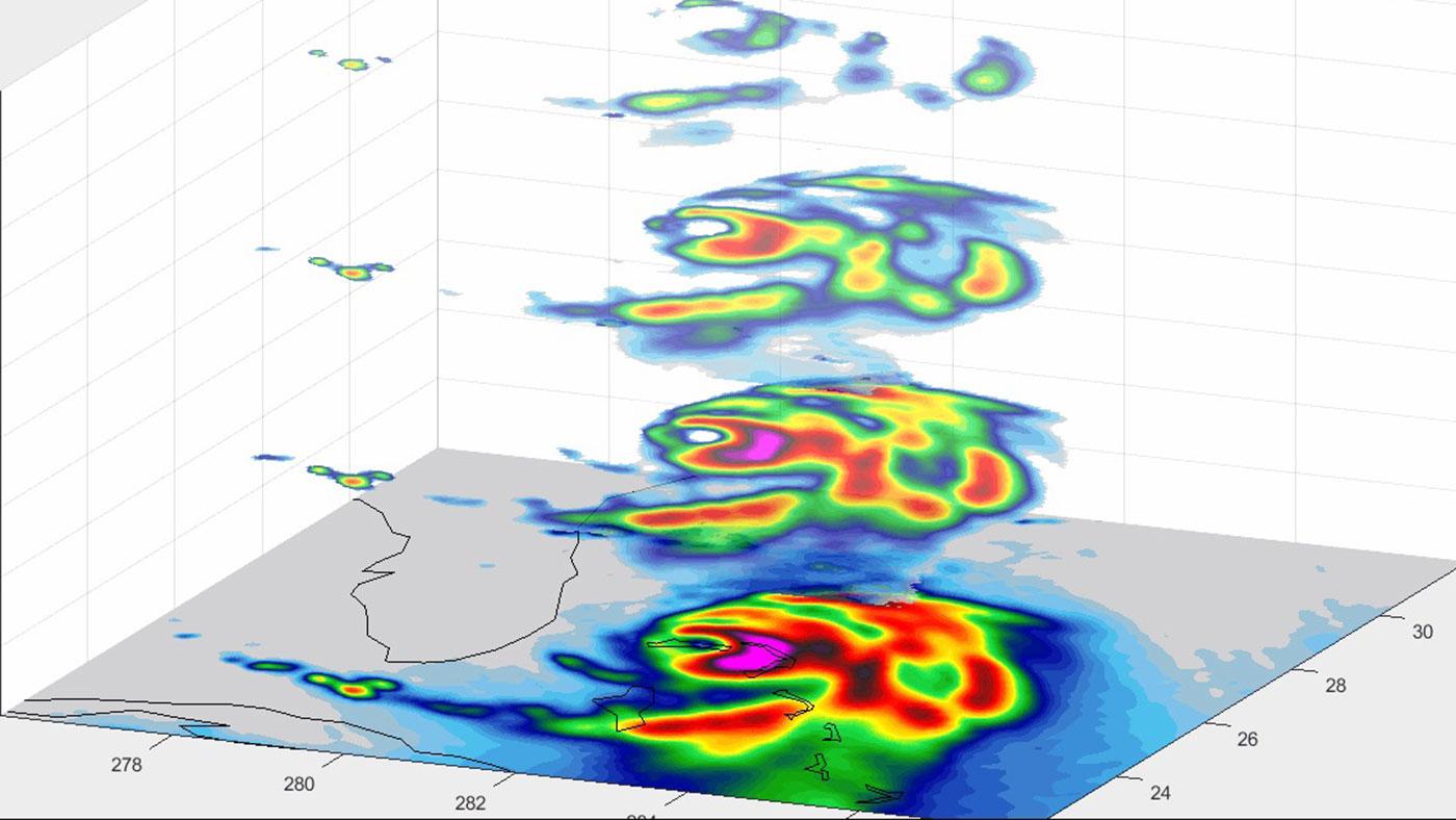 In this animation, TEMPEST-D — a weather-observing satellite the size of a cereal box — captured imagery of Hurricane Dorian off the coast of Florida at 2 a.m. EDT on Sep. 3, 2019 (11 p.m. PDT on Sept. 2, 2019). At a vantage point 250 miles (400 kilometers) above the storm, the CubeSat used its miniaturized radio-wave-based instrument to see through the clouds, revealing different depths of the hurricane with areas with heavy rainfall and moisture being pulled into the storm. The green colors indicate moisture spiraling into the storm's center, and the yellow, red and pink areas correspond to the most intense rainfall. TEMPEST-D — short for Temporal Experiment for Storms and Tropical Systems Demonstration — is an experiment in shrinking weather satellites to a size that makes them inexpensive enough to produce in multiples. The goal is eventual real-time storm coverage with many small satellites that can track storms around the world. Movie available at https://photojournal.jpl.nasa.gov/catalog/PIA23431