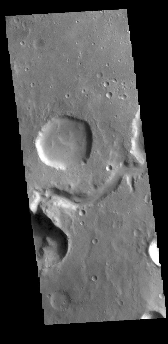 Today's VIS image shows a section of Hypanis Valles. Located in Xanthe Terra, the valley system is 270 km (167 miles) long. Orbit Number: 79140 Latitude: 9.82918 Longitude: 313.966 Instrument: VIS Captured: 2019-10-17 16:58 https://photojournal.jpl.nasa.gov/catalog/PIA23574