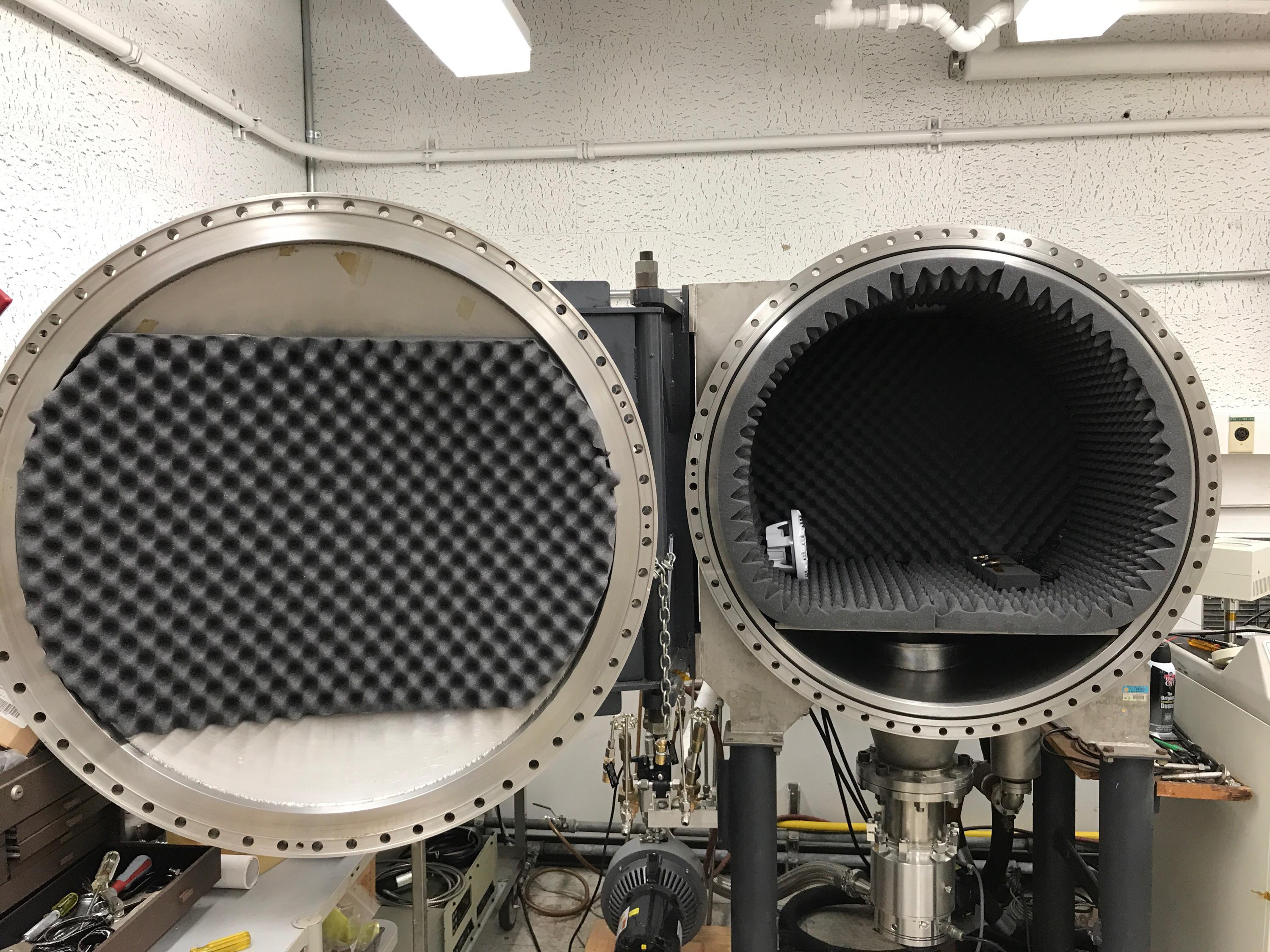 NASA's Mars 2020 Perseverance rover is equipped with two microphones that, if all goes as planned, will capture the sounds during entry, descent, and landing, and sounds on the Martian surface — from listening to the gusts of Mars' winds, to the "zap" of SuperCam's laser. This image depicts microphones under consideration the mission being tested at NASA's Jet Propulsion Laboratory in 2017. The microphones were placed inside a chamber with a playback speaker to record sounds within a simulated Martian environment. https://photojournal.jpl.nasa.gov/catalog/PIA24166