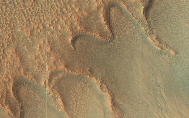 These U-shaped ridges along this crater's interior wall provide clues to an ice-rich past. The curved, scalloped ridges, called moraines, are made up of rocks that the glacier collected as it moved downslope. Even after the ice disappears, the glacial moraines remain, marking the furthest extent (or end) of the glacier. The parallel linear ridges on the wall may mark past levels of the glacier. Although glaciers move slowly, ice is a very powerful way to modify the surface of a planet. https://photojournal.jpl.nasa.gov/catalog/PIA24918