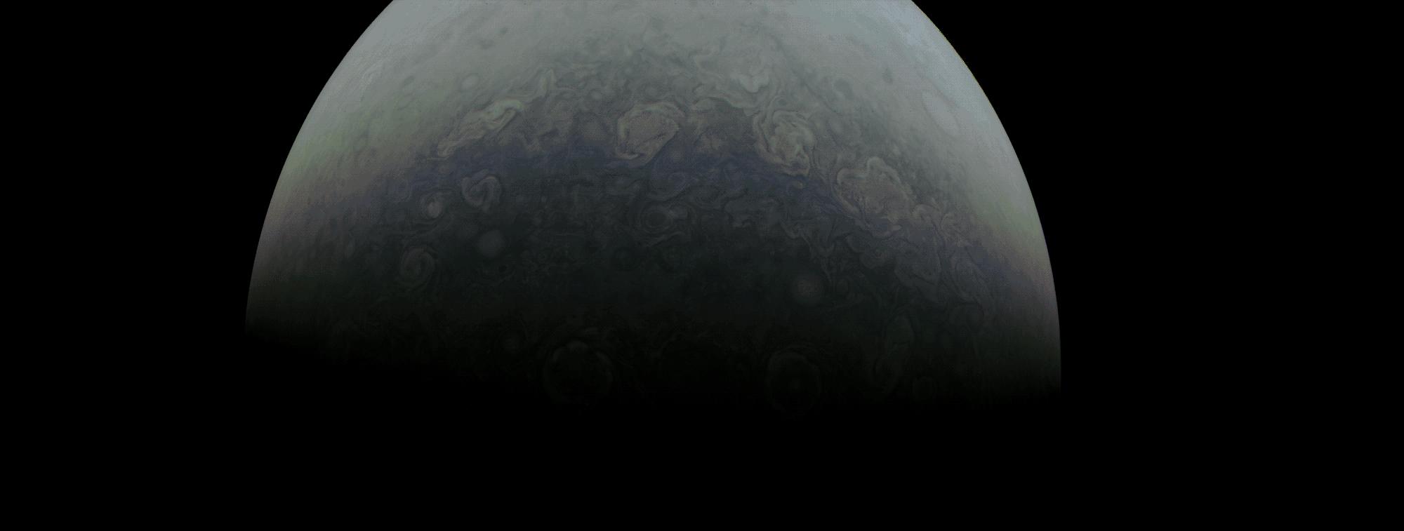 On April 9, 2022, as NASA's Juno mission completed its 41st close flyby of Jupiter, its JunoCam instrument captured what it would look like to ride along with the spacecraft. Citizen scientist Andrea Luck created this animated sequence using raw JunoCam image data. At about 87,000 miles (140,000 kilometers) in diameter, Jupiter is the largest planet in the solar system. At the point of closest approach on April 9, Juno was just over 2,050 miles (3,300 kilometers) above Jupiter's colorful cloud tops. At that moment, it was traveling at about 131,000 MPH (210,000 kilometers per hour) relative to the planet. By comparison, at closest approach Juno was more than 10 times closer to Jupiter than satellites in geosynchronous orbit are to Earth, traveling at a speed about five times faster than the Apollo missions did when they left Earth for the Moon. Movie available at https://photojournal.jpl.nasa.gov/catalog/PIA25016
