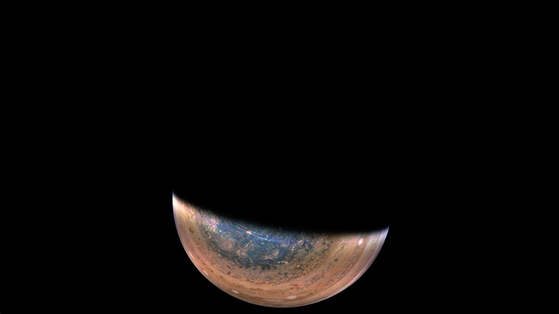 JunoCam, the color public engagement camera aboard NASA's Juno spacecraft, captured this sequence of images during its 46th close pass by the giant planet on Sept. 29, 2022. Citizen scientist Gerald Eichstädt processed the images to enhance their color and contrast, and assembled them together into this animation. Movie available at https://photojournal.jpl.nasa.gov/catalog/PIA25723