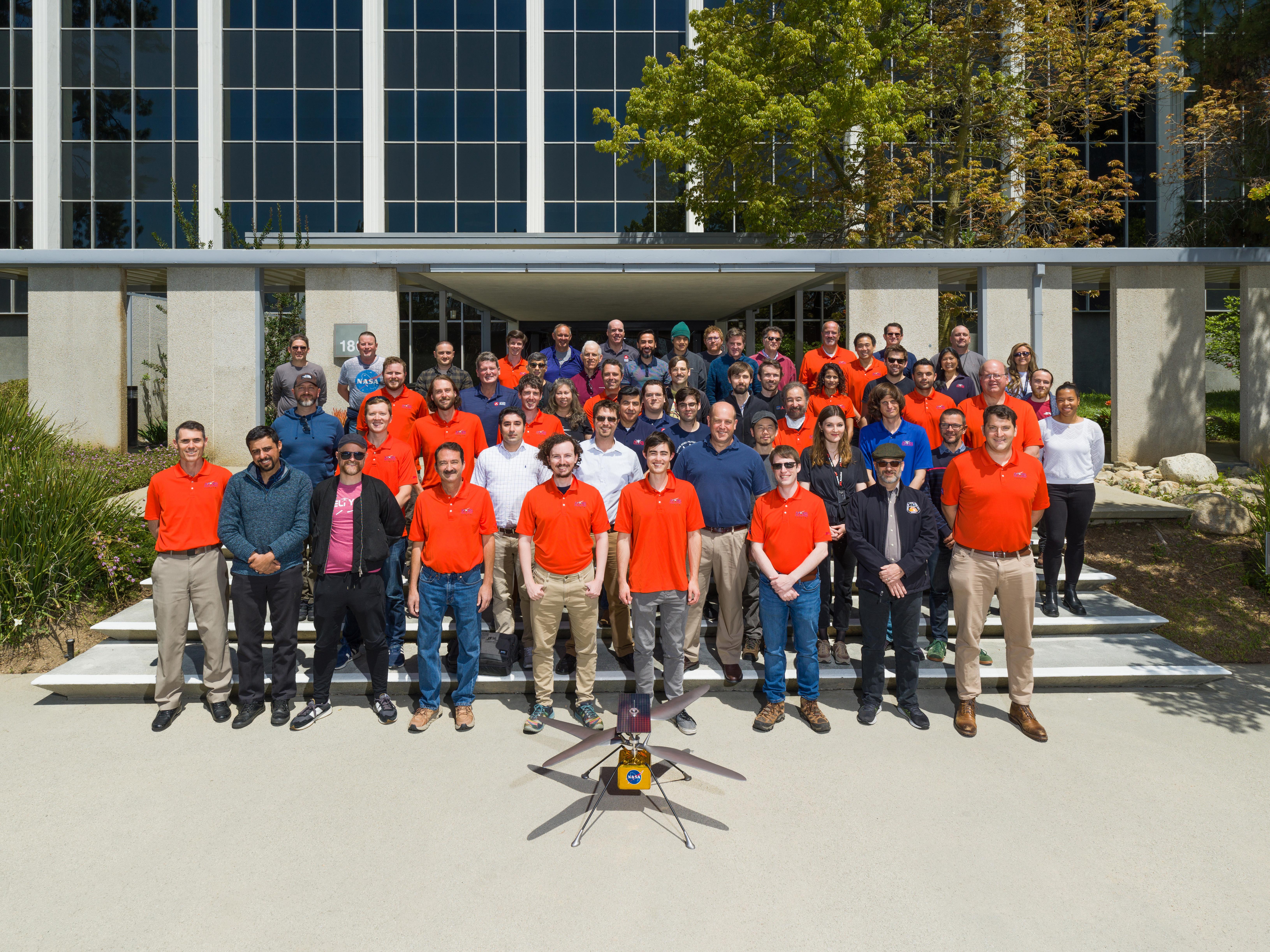 Members of NASA's Ingenuity Mars Helicopter team got together for a team photo on the second anniversary of the rotorcraft's first flight on Mars. The image was taken at the agency's Jet Propulsion Laboratory in Southern California on April 19, 2023. https://photojournal.jpl.nasa.gov/catalog/PIA25882