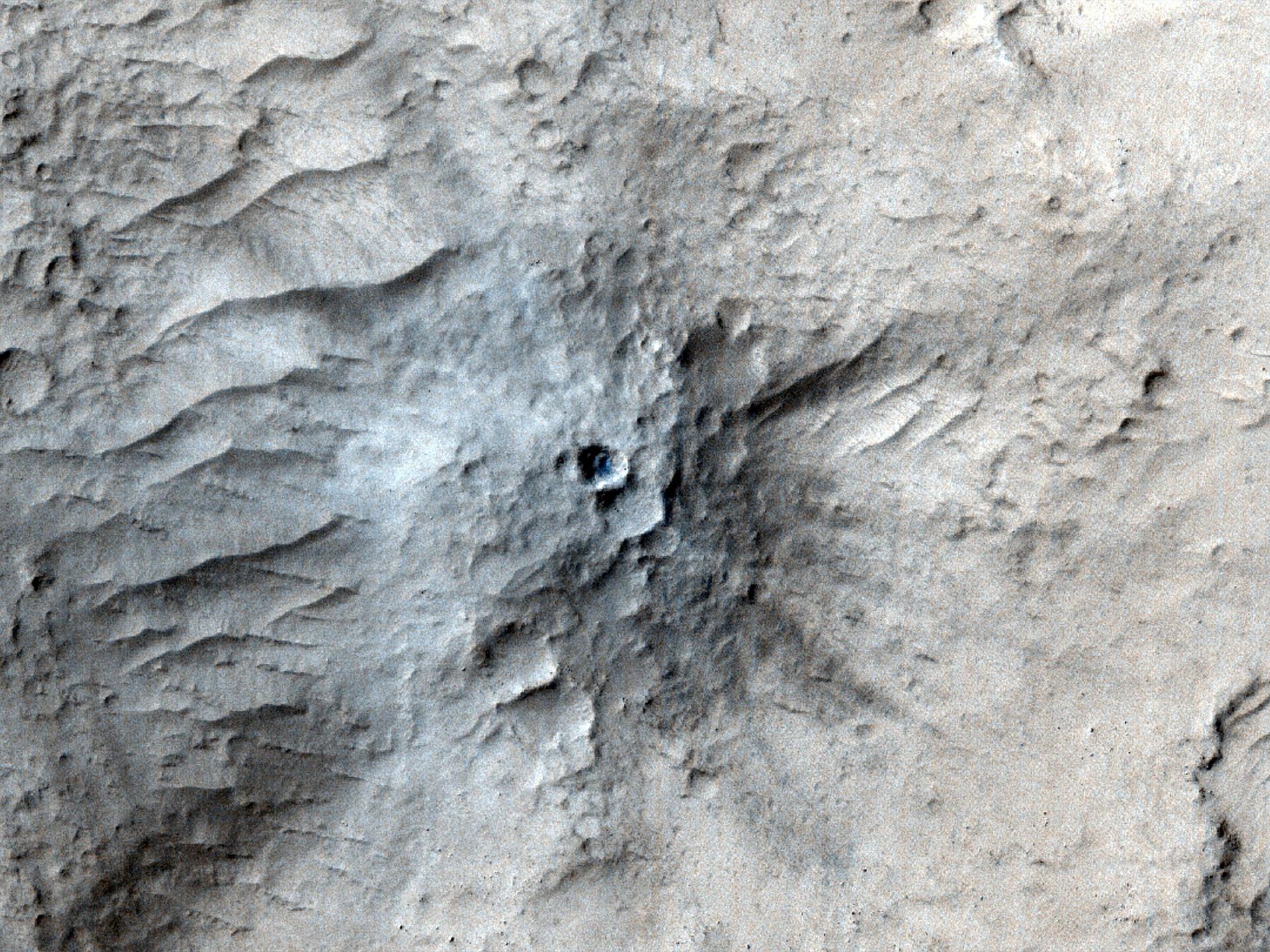 NASA's Mars Reconnaissance Orbiter used its High-Resolution Imaging Science Experiment (HiRISE) camera to capture this impact crater in Cerberus Fossae, a seismically active region of the Red Planet, on March 4, 2021. Scientists matched the crater's appearance on the surface with a quake detected by NASA's InSight lander, which was about 1,000 miles (1,640 kilometers) away. The crater is estimated to be about 71 feet (21.5 meters) in diameter. Most of the impacts detected by InSight, which was retired in 2022 after operating for more than four years, were thought to send their seismic signals through the Martian crust. But scientists concluded the energy from this impact traveled through the planet's mantle, much deeper than expected, after studying the location of the impact crater and seismic signals linked to it. Because of this finding, models of the composition and structure of the inner planet will have to be reassessed. This impact crater, along with others covered in a pair of papers published in Geophysical Research Letters in February 2025, was found with help from a machine learning algorithm developed at NASA's Jet Propulsion Laboratory in Southern California. The algorithm searched through tens of thousands of images captured by MRO's Context Camera in a matter of days, detecting 123 potential craters that may have occurred at the same time InSight was recording data. Traditional methods, in which human scientists carefully peer over images pixel by pixel, would have taken years of work to find these matches. Human scientists still had to narrow down the pool of candidate craters to 49 that matched InSight's quake data. After discovering this impact, scientists commanding MRO to take more detailed imagery with HiRISE. https://photojournal.jpl.nasa.gov/catalog/PIA26518