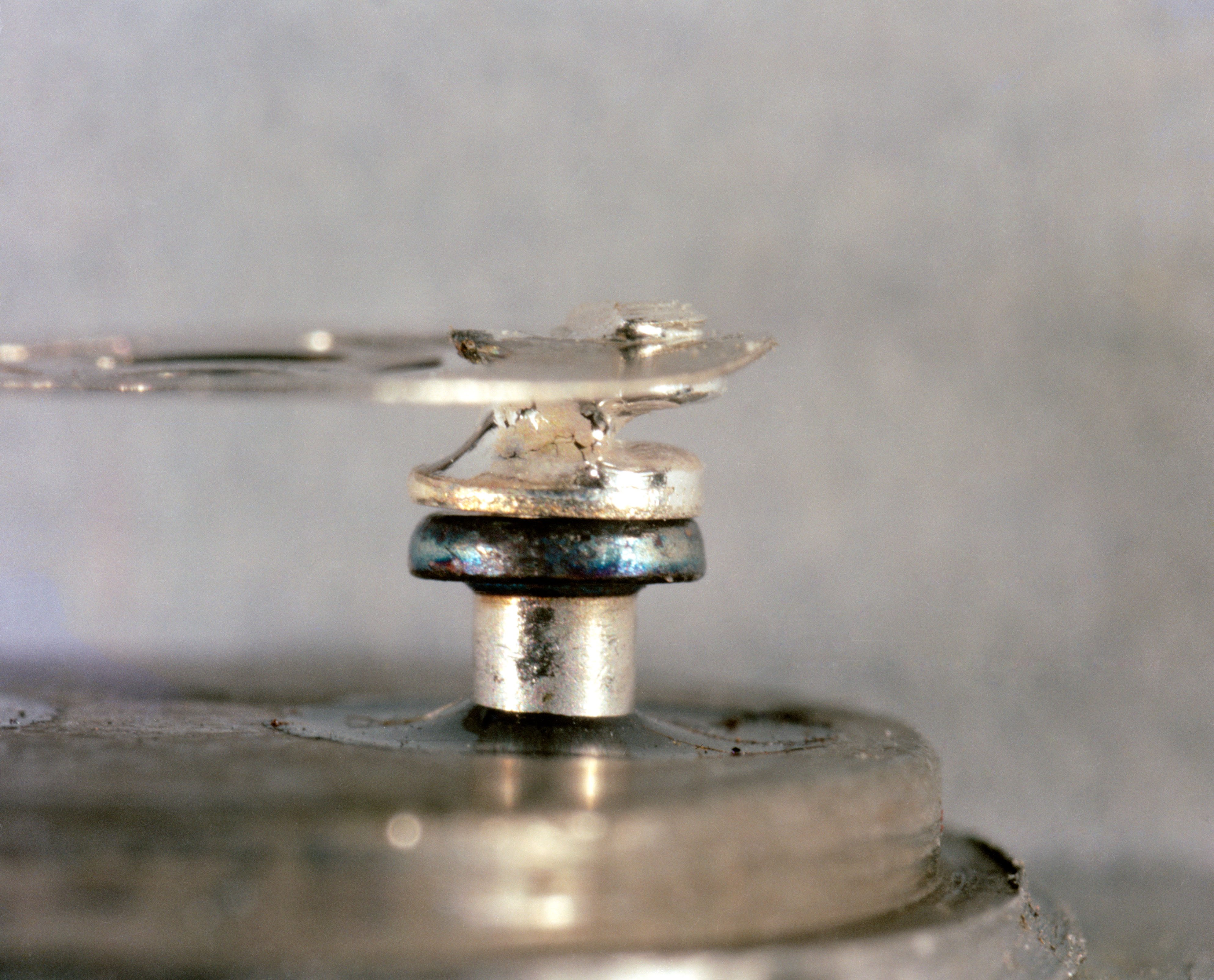 S70-40850 (June 1970) --- Fused thermal switch from Apollo Service Module (SM) oxygen tank after test at the NASA Manned Spacecraft Center (MSC) simulating Apollo 13 de-tanking procedures.