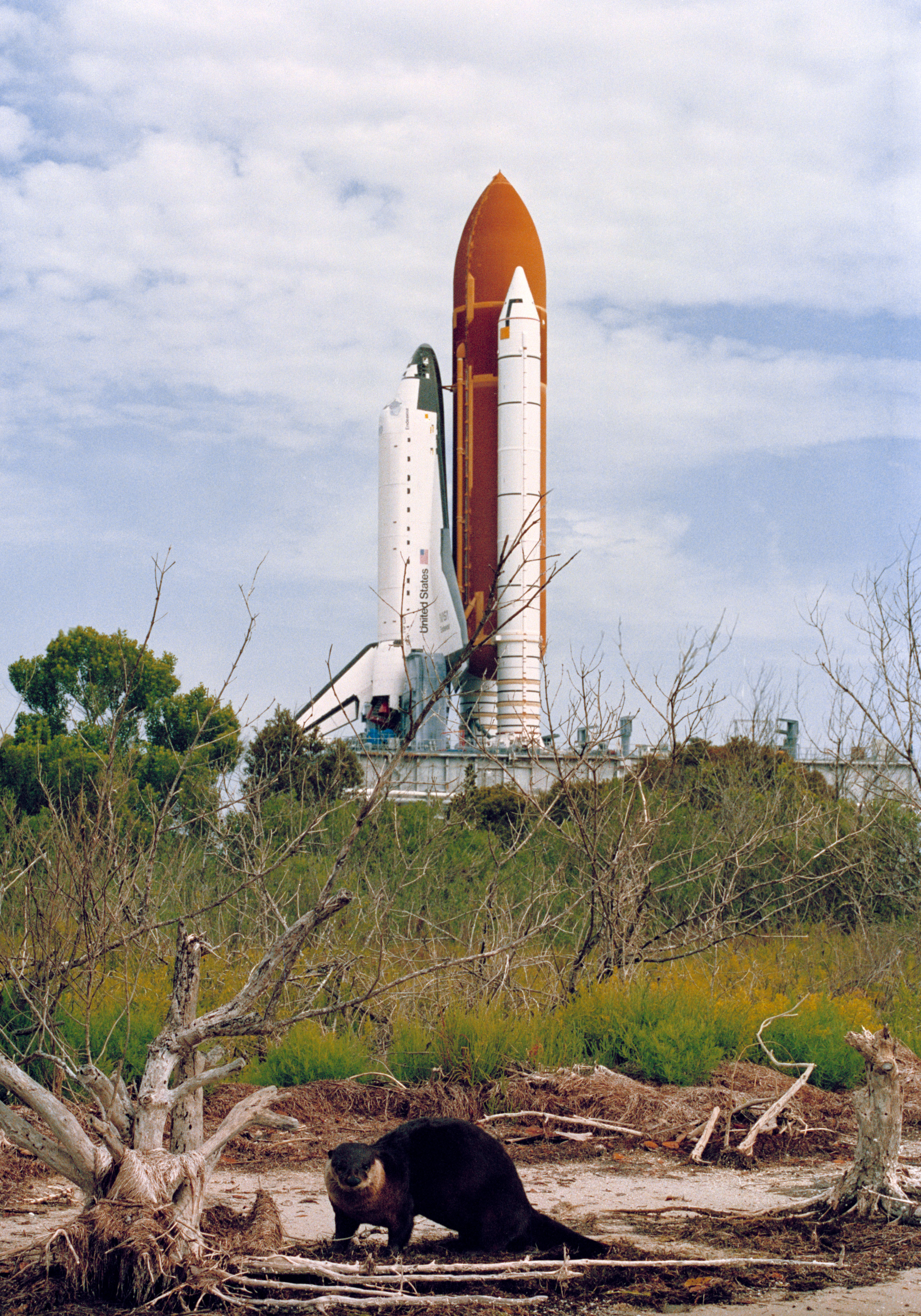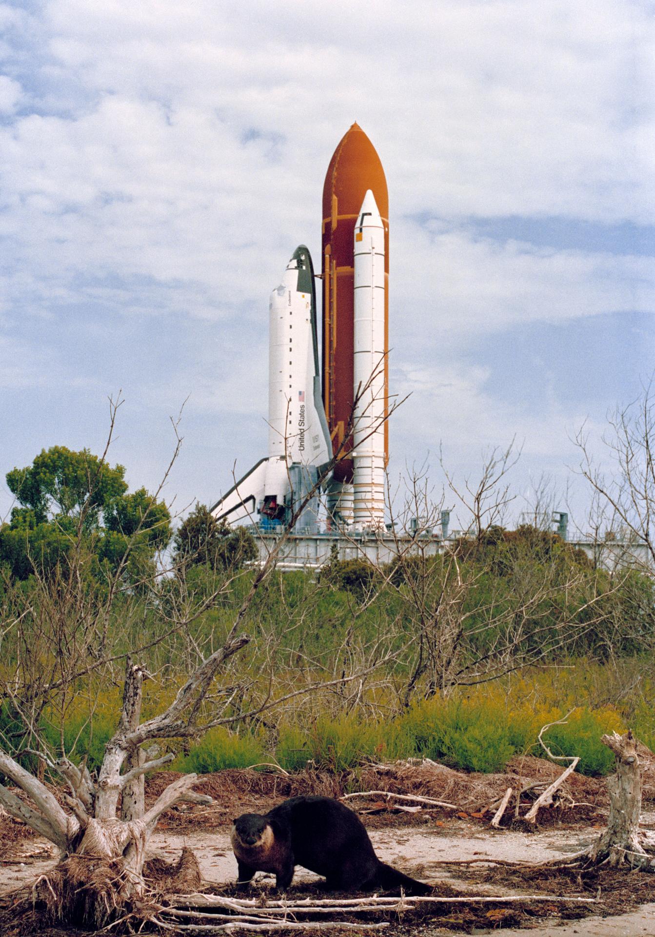 S92-34862 (13 March 1992) --- An otter, surprised by the unexpected presence of the photographer, seems unaware of the Space Shuttle Endeavour rolling behind it to Launch Pad 39B. Endeavour is the newest orbiter in the Shuttle fleet. Still ahead for Endeavour (OV-105) is a Flight Readiness Firing of its three main engines, and the Terminal Countdown Demonstration Test with the flight crew. Endeavour's maiden voyage on NASA's mission STS-49 will occur in late spring.