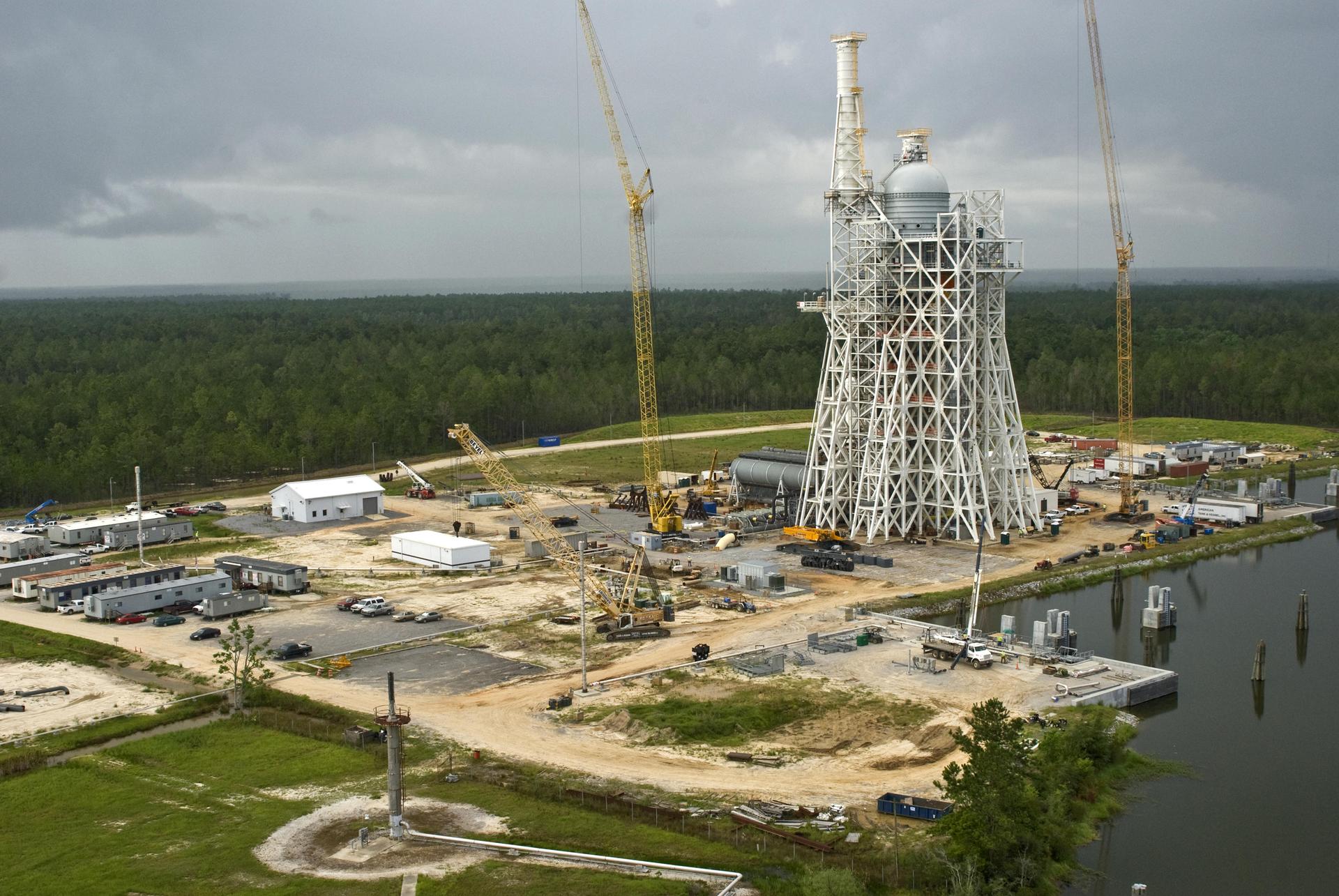 Work continues on the A-3 Test Stand at Stennis Space Center. The new stand will allow operators to test next-generation rocket engines at simulated altitudes up to 100,000 feet. The test stand is scheduled for completion and activation in 2013.