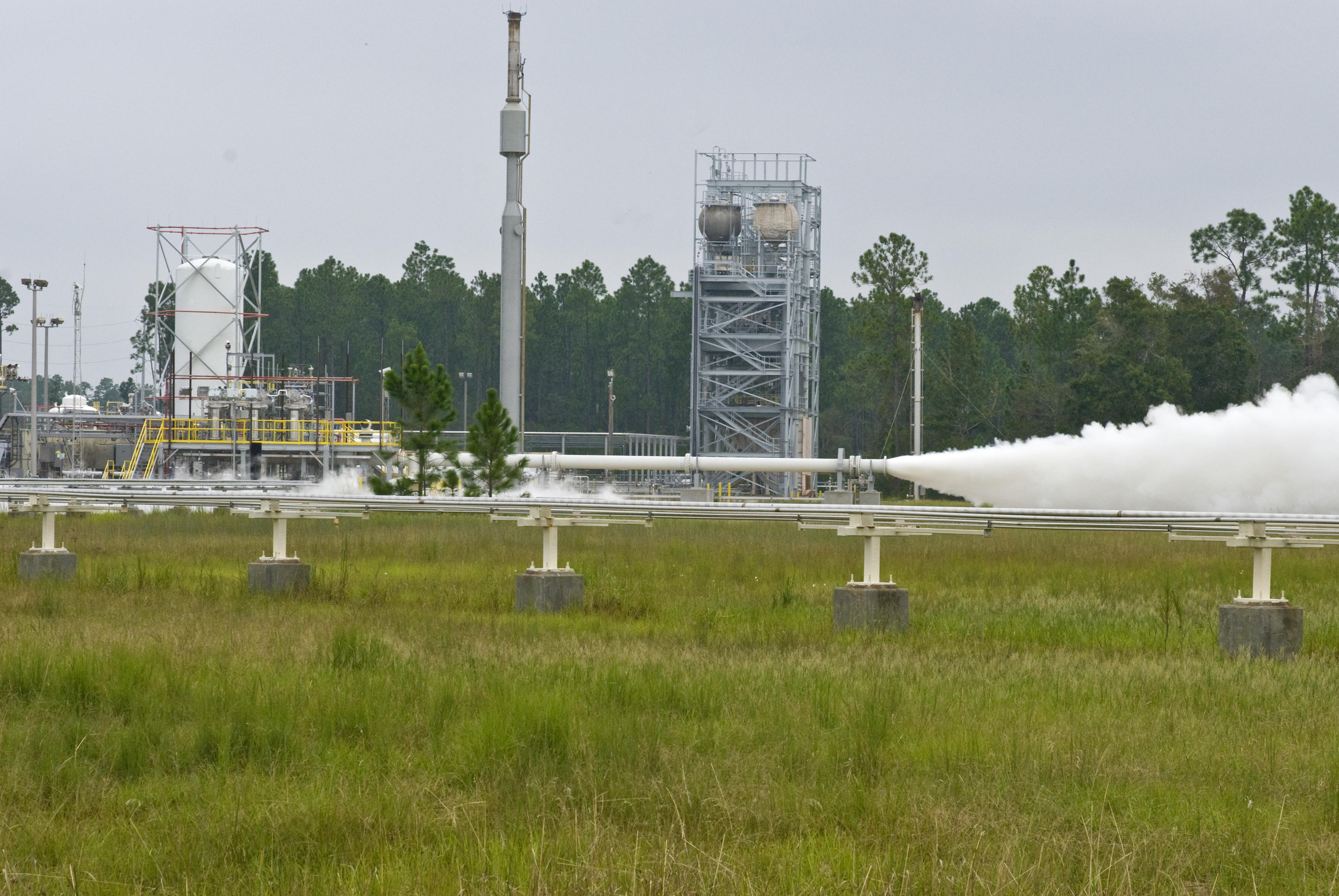 E-2 Test Stand team members at Stennis Space Center conducted their first series of tests on a three-module chemical steam generator unit Sept. 15. All three modules successfully fired during the tests. The chemical steam generator is a critical component for the A-3 Test Stand under construction at Stennis.
