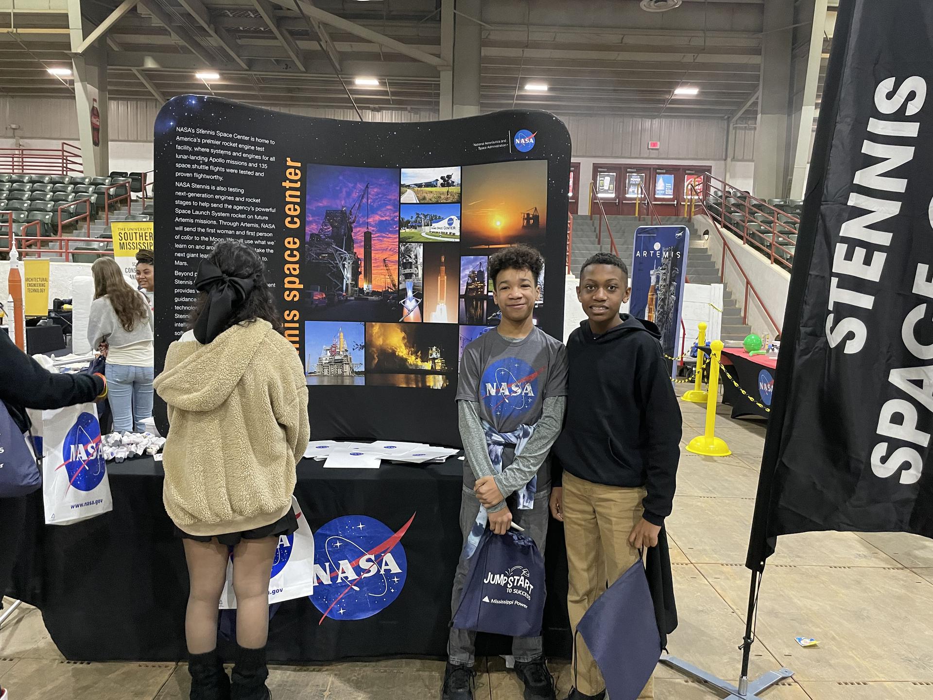 Students in today’s classrooms make up the Artemis Generation and everyone can find their place in space as NASA explores the secrets of the universe for the benefit of all. Representatives from NASA’s Stennis Space Center participated in the Hattiesburg Area Development Partnership’s Jumpstart to Success interactive career expo on Feb. 1, reaching more than 1,700 eighth and ninth grade students from Forrest, Lamar, and Perry counties in Mississippi. Through Artemis, NASA will establish the foundation for long-term scientific exploration at the Moon, land the first woman, first person of color, and first international partner astronaut on the lunar surface, and prepare for human expeditions to Mars. Photo Credit: NASA/Samone Wilson