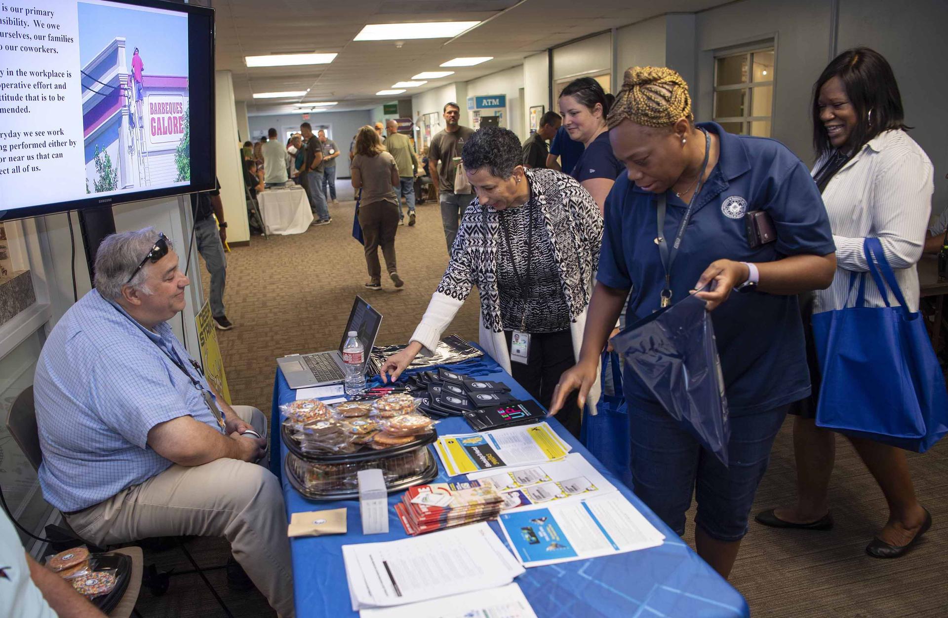 NASA Stennis employees visit booths with safety and health information in the Roy S. Estess Building during the annual Safety and Health Day at NASA’s Stennis Space Center on Sept. 26. The yearly event is a reminder to the NASA Stennis workforce about the importance of a safe work environment and provided the opportunity for a health screening.